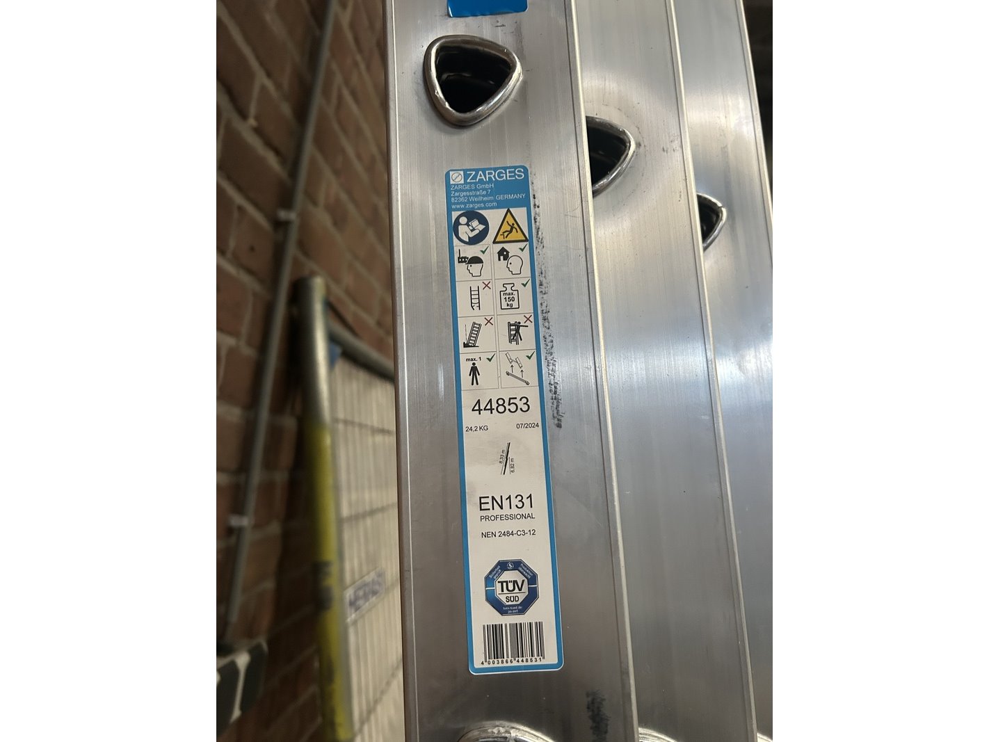 Merk: Zarges Product: Gefelste opsteekladder 3-delig 3 x 12 sporten Specificaties: Showroom model.