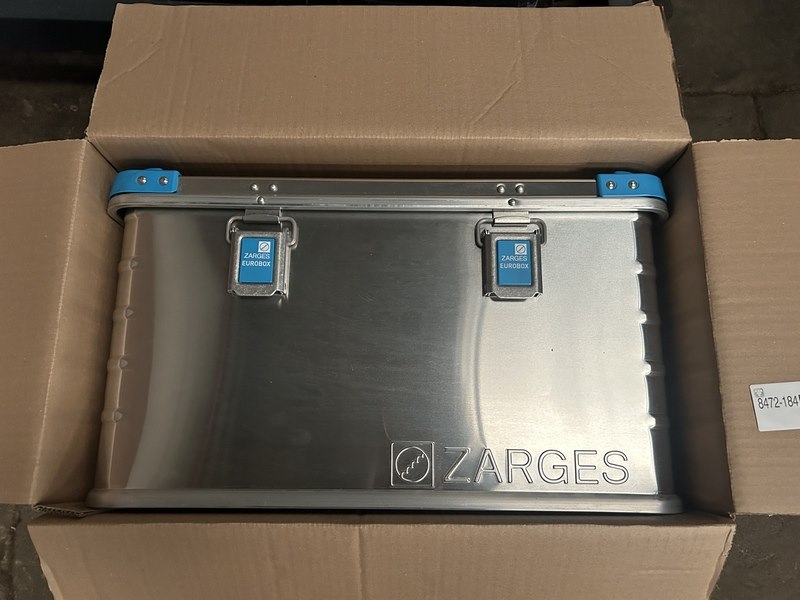 Merk: Zarges Product: Aluminium transportbox Specificaties: Showroom model.