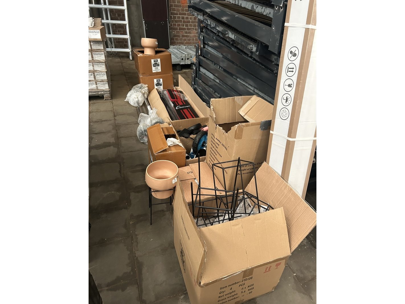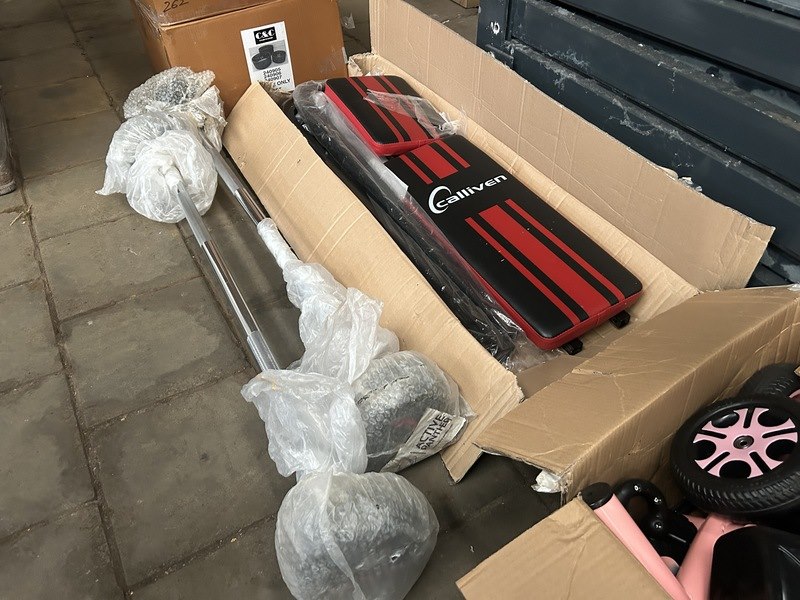 Product: Partij (online) winkelvoorraad w.o. sportartikelen en speelgoed Specificaties: Nieuw, showroom modellen, demo modellen en gebruikt. Werking en compleetheid onbekend. Let op! Stellingen, steiger en projectieschermen op de achtergrond van de foto's zijn niet inbegrepen.