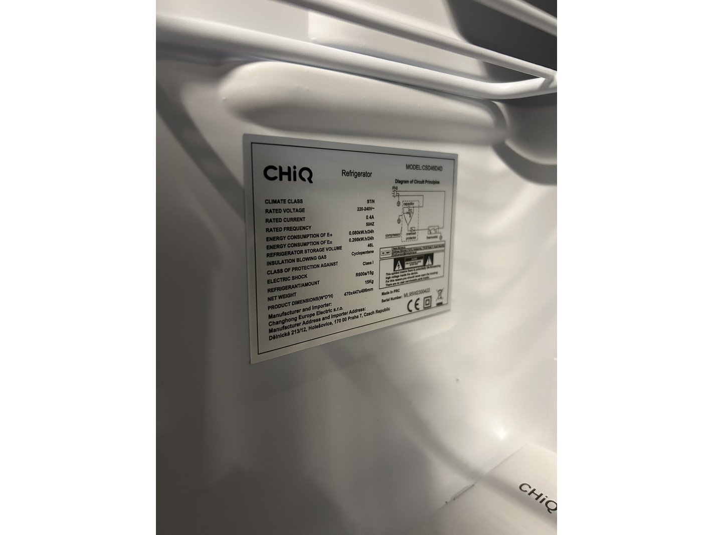 Merk: CHiQ Product: Mini koelkast, minibar 46 liter Afmeting: lxbxh 470x447x496 mm Specificaties: Showroom model.