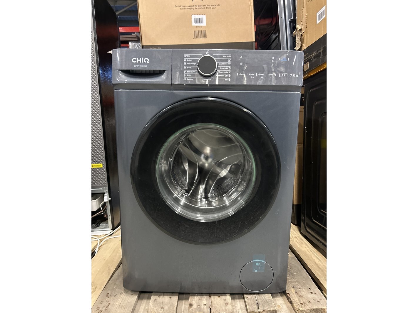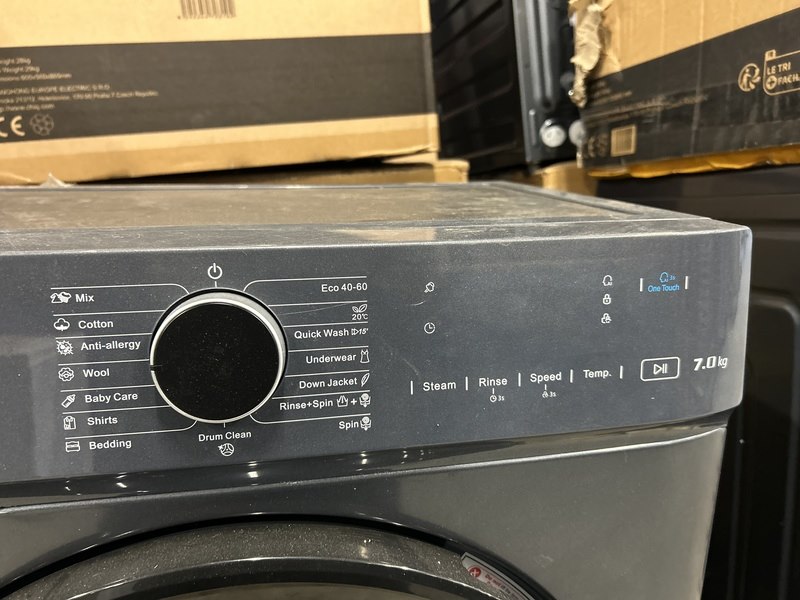 Merk: CHiQ Product: Wasmachine 7 kg AI Smart energieklasse A Afmeting: 600x465x850 mm Specificaties: Demo model.