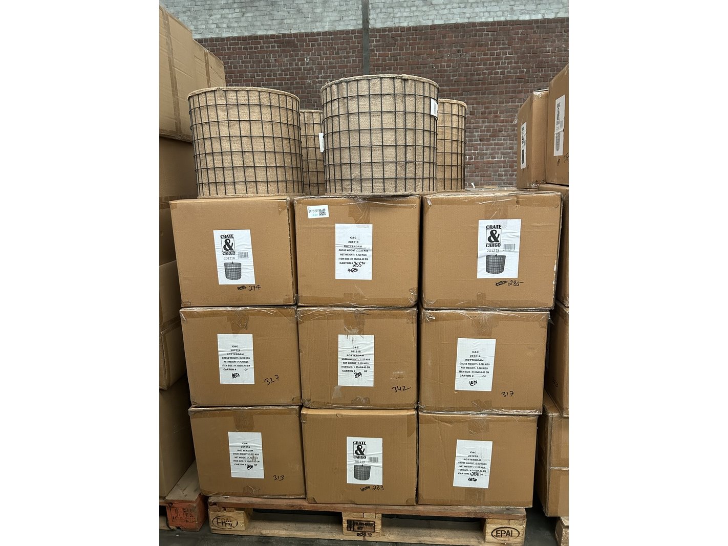 Pallet lampenkappen (22x) crate & cargo