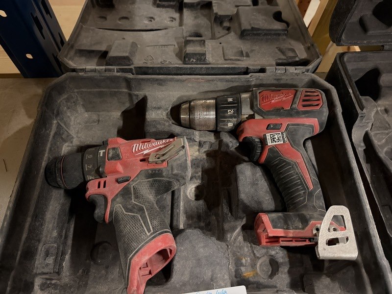 Merk: Milwaukee Product: Boormachine, schroefmachine, 2x koffer, 1x accu Conditie: gebruikt Specificaties: Zonder lader. In totaal 1x accu.