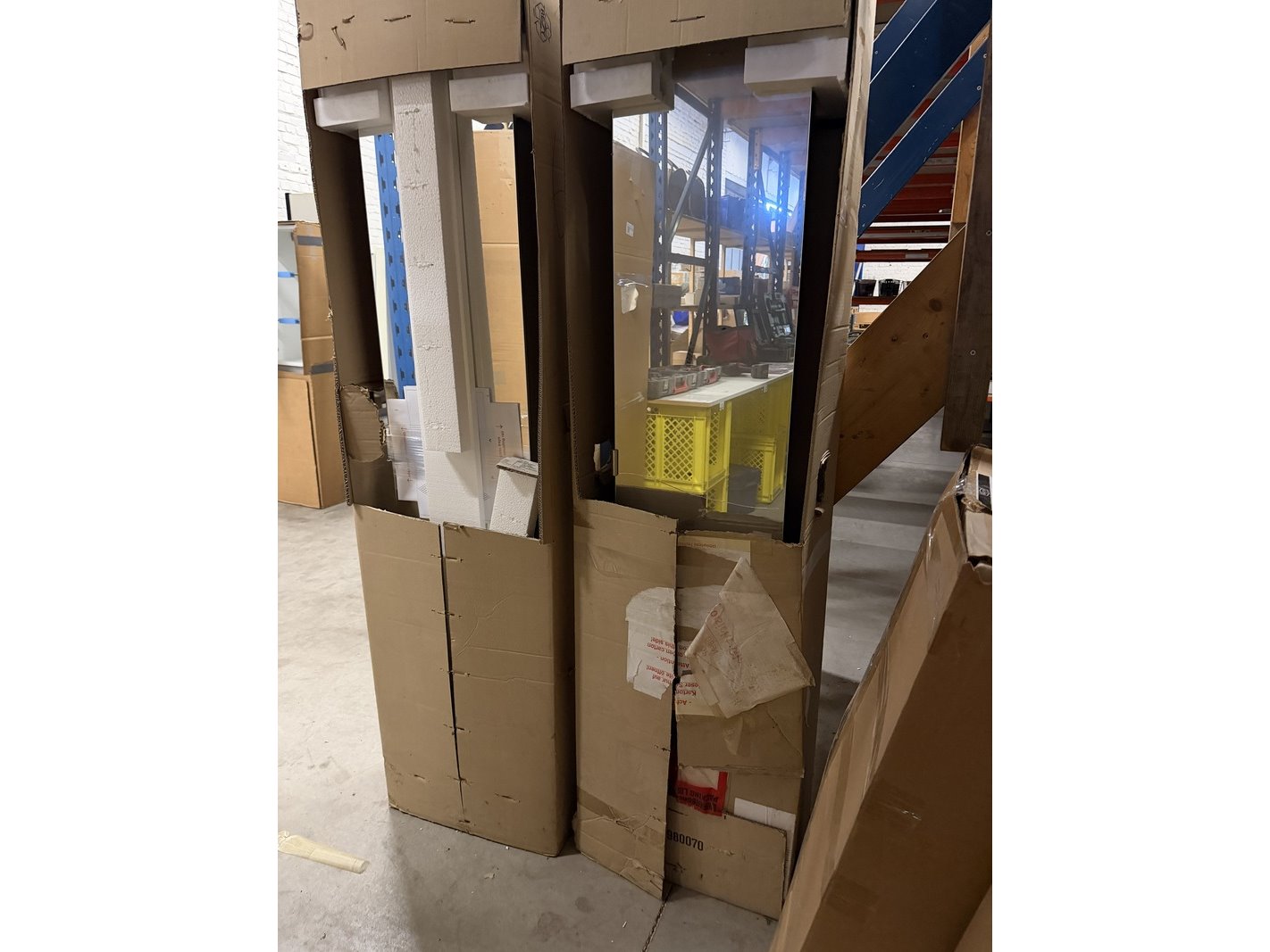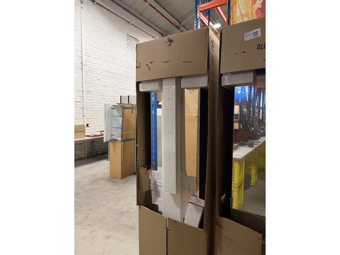 Product: Hoge badkamerkast met spiegel 350x1750 mm Conditie: nieuw Specificaties: 1x beschadigd door transport, barst in spiegel.