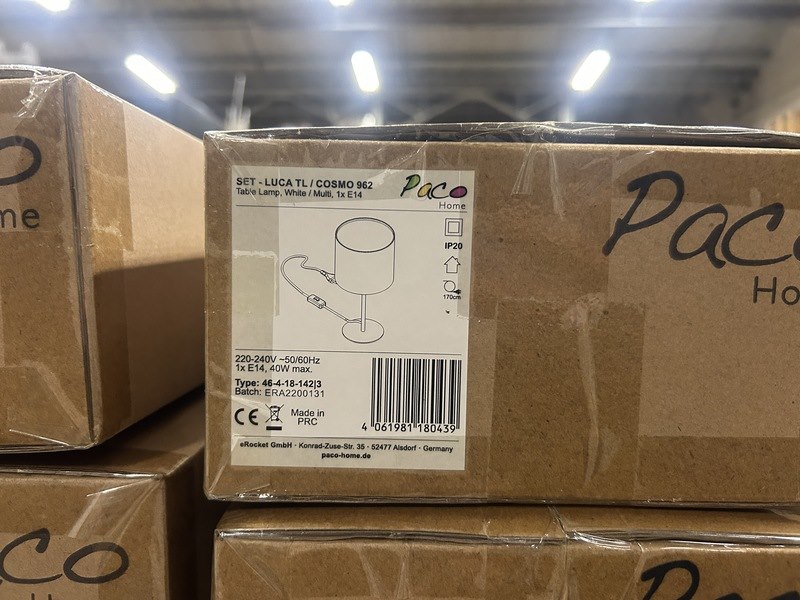 Pallet met 54 stuks design verlichting paco home – verkrijgbaar op bol.com en amazon