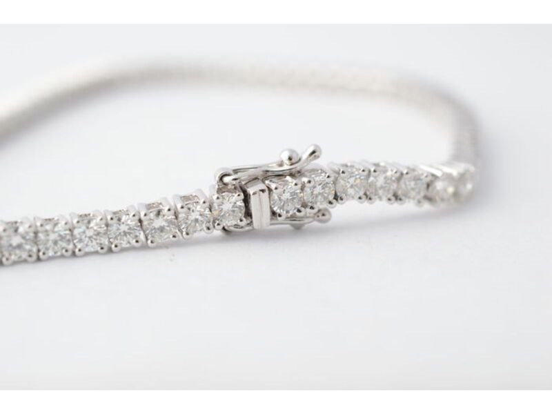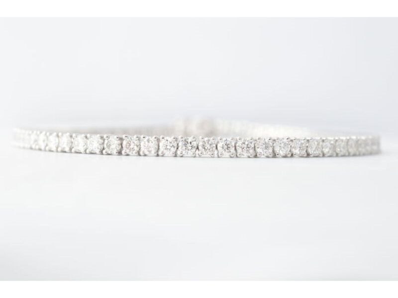 Product: Witgouden tennisarmband met 4.00 carat diamanten Specificaties: Diamant: Natuurlijk Slijpvorm: Briljant geslepen Gewicht (carat): 4.00 carat Kleur: F-G Zuiverheid: VS Slijpkwaliteit: Excellent Juweel: Armband Gewicht: 8.5 gram Afmetingen/lengte: 17-18 cm Materiaal: 18K goud (750) Conditie: Nieuw Verpakking: Luxe sieradendoos Toelichting: De kwaliteit is overgenomen van het rapport behorend bij item. De waardebepaling is een beoordeling van een gecertificeerde diamantair, gebaseerd op consumentenprijzen. Consumentenprijs: € 21.000,- *Ringen kunnen als het mogelijk is op maat gemaakt worden.