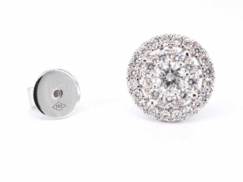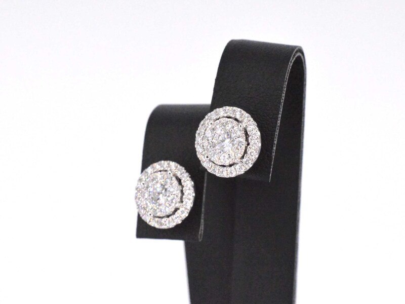 Product: Witgouden entourage oorbellen gezet met 60 briljant geslepen diamanten Specificaties: Diamant: Natuurlijk Slijpvorm: Briljant geslepen Gewicht (carat): 1.60 carat Kleur: F-G Zuiverheid: VS Slijpkwaliteit: Zeer mooi Juweel: Oorbellen Gewicht: 4.9 gram Afmetingen/lengte: Diameter: 11 mm Materiaal: 18K goud (750) Conditie: Nieuw Verpakking: Luxe sieradendoos Toelichting: De kwaliteit is overgenomen van het rapport behorend bij item. De waardebepaling is een beoordeling van een gecertificeerde diamantair, gebaseerd op consumentenprijzen. Consumentenprijs: € 11.078,- *Ringen kunnen als het mogelijk is op maat gemaakt worden.
