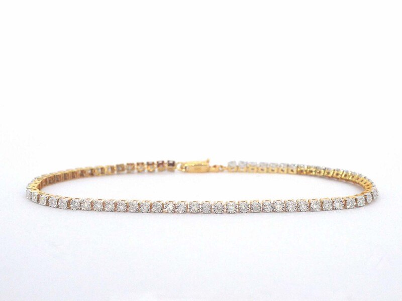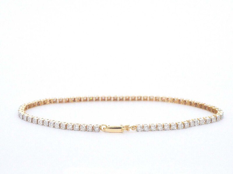 Product: Gouden tennis armband met natuurlijke diamanten Specificaties: Diamant: Natuurlijk Aantal: 69 stuks Slijpvorm: Rond geslepen Gewicht (carat): 0.50 carat Kleur: F-G Zuiverheid: VS-SI Juweel: Armband Gewicht: 3 gram Afmetingen/lengte: 18 cm Materiaal: 14k goud (585) Conditie: Nieuw Verpakking: Luxe sieradendoos Toelichting: De kwaliteit is overgenomen van het rapport behorend bij item. De waardebepaling is een beoordeling van een gecertificeerde diamantair, gebaseerd op consumentenprijzen. Consumentenprijs: € 3.465,- *Ringen kunnen als het mogelijk is op maat gemaakt worden.