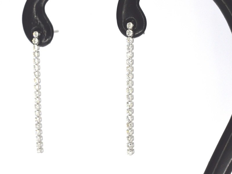 Product: Witgouden oorhangers met een rij aan natuurlijke diamanten Specificaties: Diamant: Natuurlijk Aantal: 38 stuks Slijpvorm: Briljant geslepen Gewicht (carat): 0.60 carat Kleur: F-G Zuiverheid: VS-SI Slijpkwaliteit: Zeer mooi Juweel: Oorbellen Gewicht: 1 gram Afmetingen/lengte: 3.4 x 0.1 cm Materiaal: 14 karaat (585) Conditie: Nieuw Verpakking: Luxe sieradendoos Toelichting: De kwaliteit is overgenomen van het rapport behorend bij item. De waardebepaling is een beoordeling van een gecertificeerde diamantair, gebaseerd op consumentenprijzen. Consumentenprijs: € 3.273,- *Ringen kunnen als het mogelijk is op maat gemaakt worden.