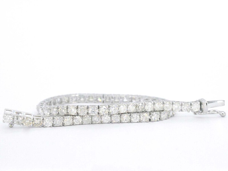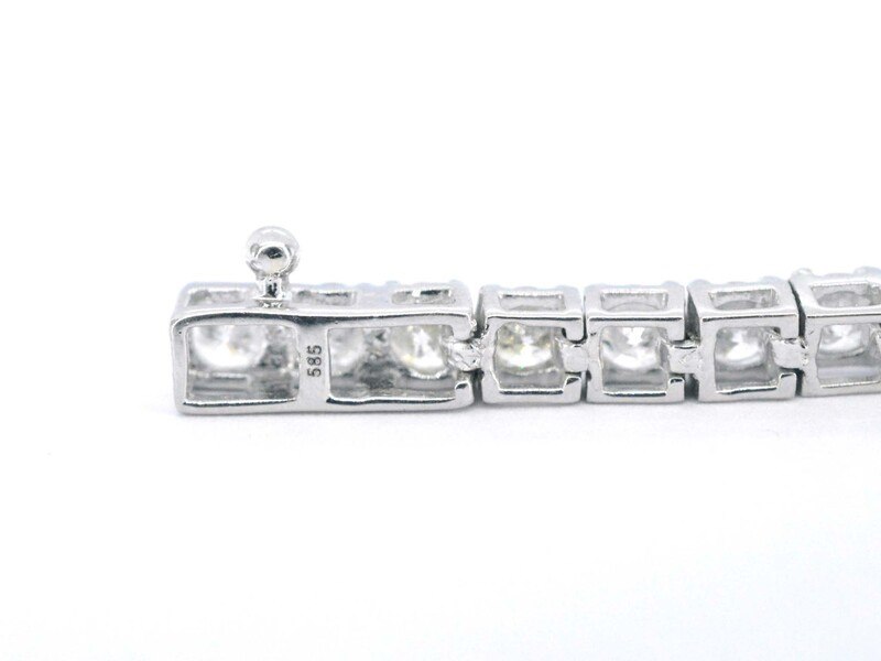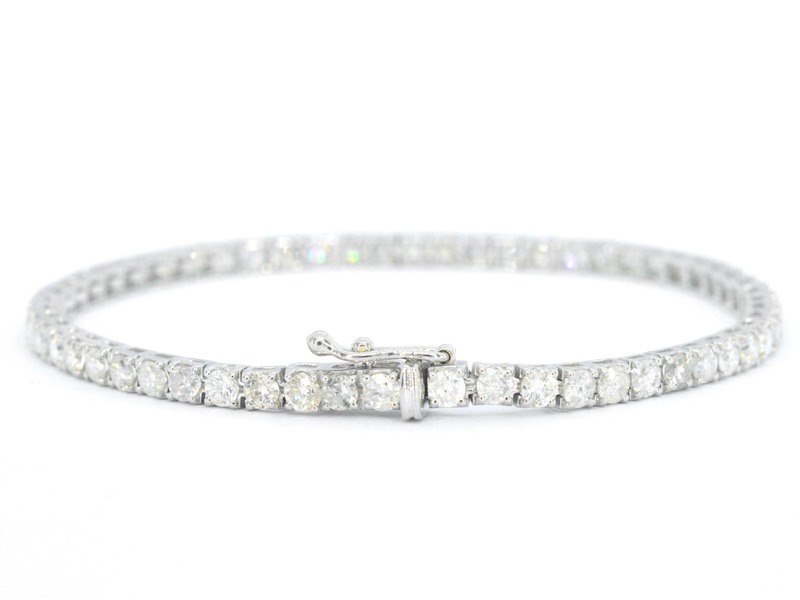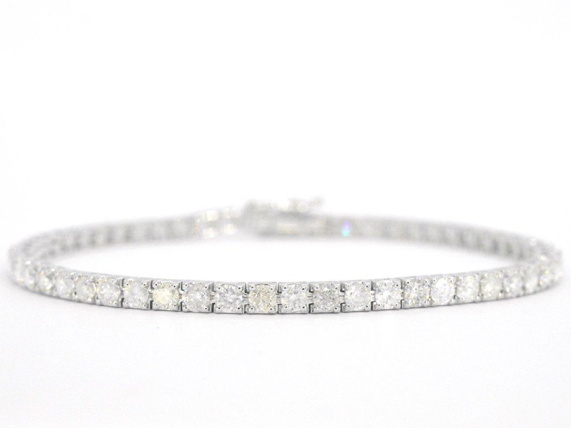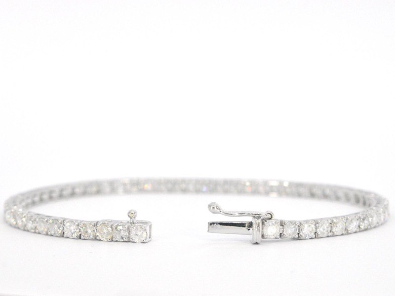 Product: Witgouden armband met diamanten 5.40 carat Specificaties: Diamant: Natuurlijk Aantal: 58 stuks Slijpvorm: Briljant geslepen Gewicht (carat): 5.40 carat Kleur: wit Zuiverheid: Met veel natuurlijke insluitsels Slijpkwaliteit: Goed Juweel: Armband Gewicht: 9.9 gram Afmetingen/lengte: 17.8 cm Materiaal: 14k goud (585) Conditie: Nieuw Verpakking: Luxe sieradendoos Toelichting: De kwaliteit is overgenomen van het rapport behorend bij item. De waardebepaling is een beoordeling van een gecertificeerde diamantair, gebaseerd op consumentenprijzen. Consumentenprijs: € 12.250,- *Ringen kunnen als het mogelijk is op maat gemaakt worden.