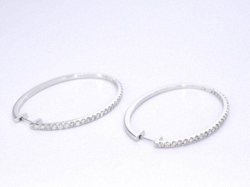 Product: Witgouden oorbellen met diamanten Specificaties: Diamant: Natuurlijk Slijpvorm: Briljant geslepen Gewicht (carat): 1.75 carat Kleur: F-G Zuiverheid: SI-P Slijpkwaliteit: Zeer mooi Juweel: Oorbellen Gewicht: 12.5 gram Afmetingen/lengte: Diameter: 50 mm Materiaal: 14 karaat (585) Conditie: Nieuw Verpakking: Luxe sieradendoos Toelichting: De kwaliteit is overgenomen van het rapport behorend bij item. De waardebepaling is een beoordeling van een gecertificeerde diamantair, gebaseerd op consumentenprijzen. Consumentenprijs: € 10.150,- *Ringen kunnen als het mogelijk is op maat gemaakt worden.