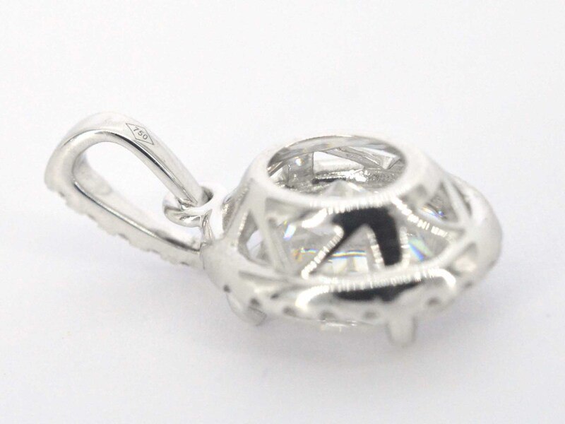 Product: 18 carat witgouden hanger met diamanten en een ovale briljant Specificaties: Diamant: Natuurlijk Slijpvorm: Briljant geslepen Gewicht (carat): 0.25 carat Kleur: F-G Zuiverheid: VS Slijpkwaliteit: Zeer mooi Edelsteen: Moisanniet Slijpvorm: Briljant geslepen Gewicht (carat): 2.00 carat Kleur: Wit Zuiverheid: Zeer zuiver Slijpkwaliteit: Very good Juweel: Hanger (excl. ketting) Gewicht: 1.9 gram Afmetingen/lengte: 19 x 10 mm Materiaal: 18K goud (750) Conditie: Nieuw Verpakking: Luxe sieradendoos Toelichting: De kwaliteit is overgenomen van het rapport behorend bij item. De waardebepaling is een beoordeling van een gecertificeerde diamantair, gebaseerd op consumentenprijzen. Consumentenprijs: € 3.010,- *Ringen kunnen als het mogelijk is op maat gemaakt worden.