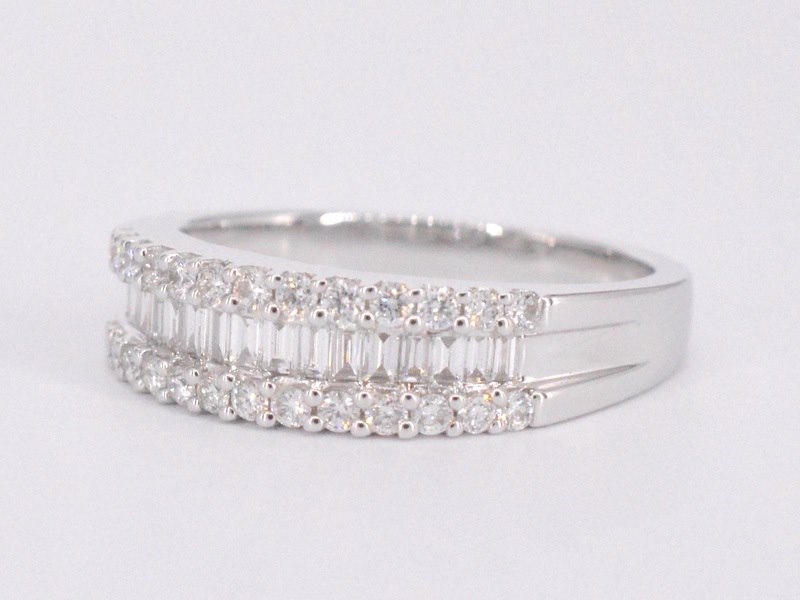 Product: Witgouden ring met briljant en baguettes Specificaties: Aantal: 42 stuks Slijpvorm: Briljant en baguette geslepen Gewicht (carat): 0.75 carat Kleur: F-G Zuiverheid: VS Slijpkwaliteit: Zeer mooi Juweel: Ring Gewicht: 4.2 gram Ringmaat (op maat gemaakt*): 53 (17 mm) Materiaal: 18K goud (750) Conditie: Nieuw Verpakking: Luxe sieradendoos Toelichting: De kwaliteit is overgenomen van het rapport behorend bij item. De waardebepaling is een beoordeling van een gecertificeerde diamantair, gebaseerd op consumentenprijzen. Consumentenprijs: € 6.370,- *Ringen kunnen als het mogelijk is op maat gemaakt worden.