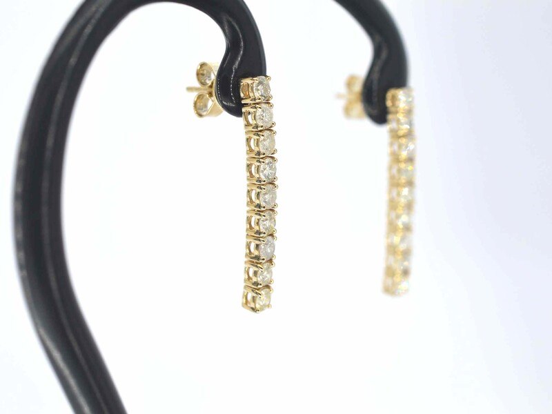 Product: Gouden oorhangers met natuurlijke briljant geslepen diamanten Specificaties: Diamant: Natuurlijk Aantal: 18 stuks Slijpvorm: Briljant geslepen Gewicht (carat): 2.00 carat Kleur: Wit Zuiverheid: Met natuurlijke insluitsels Slijpkwaliteit: Zeer mooi Juweel: Oorbellen Gewicht: 4 gram Afmetingen/lengte: 3 cm Materiaal: 14k goud (585) Conditie: Nieuw Verpakking: Luxe sieradendoos Toelichting: De kwaliteit is overgenomen van het rapport behorend bij item. De waardebepaling is een beoordeling van een gecertificeerde diamantair, gebaseerd op consumentenprijzen. Consumentenprijs: € 5.980,- *Ringen kunnen als het mogelijk is op maat gemaakt worden.