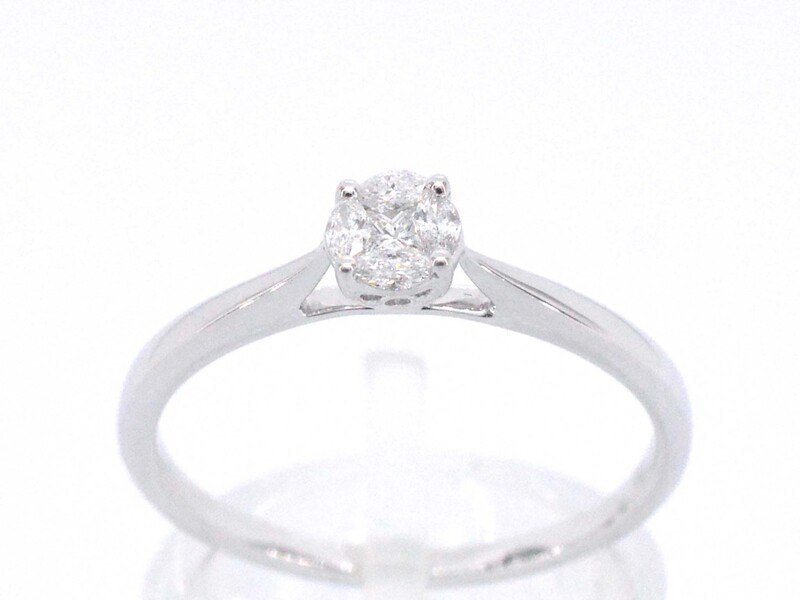Product: Witgouden ring met diamant Specificaties: Diamant: Natuurlijk Slijpvorm: Prinses en marquise geslepen Gewicht (carat): 0.20 carat Kleur: F-G Zuiverheid: VS Slijpkwaliteit: Zeer mooi Juweel: Ring Gewicht: 2 gram Ringmaat (op maat gemaakt*): 54 (17.25 mm) Materiaal: 14 karaat (585) Conditie: Nieuw Verpakking: Luxe sieradendoos Toelichting: De kwaliteit is overgenomen van het rapport behorend bij item. De waardebepaling is een beoordeling van een gecertificeerde diamantair, gebaseerd op consumentenprijzen. Consumentenprijs: € 1.733,- *Ringen kunnen als het mogelijk is op maat gemaakt worden.