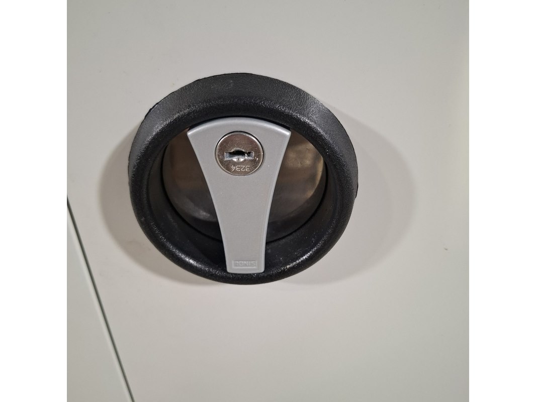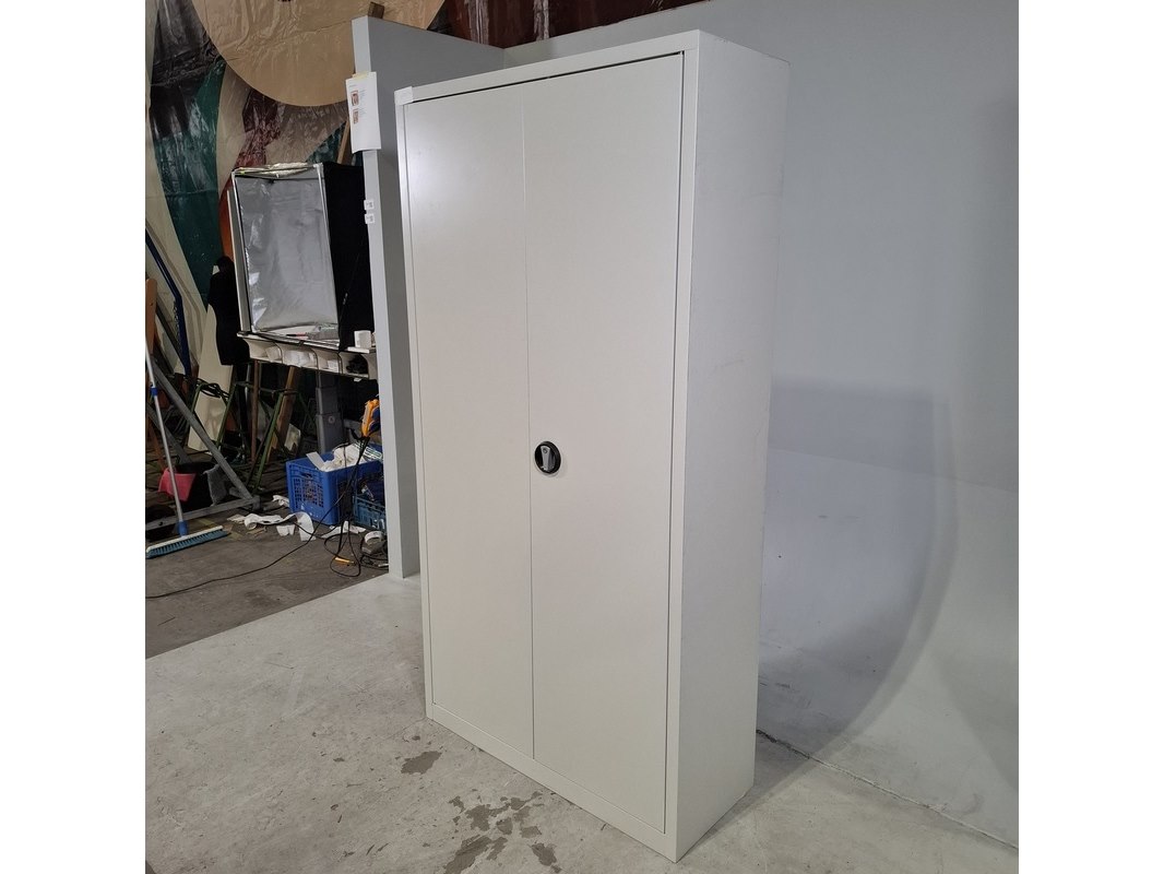 Product: Werkplaatskast Afmeting: HxBxD ca. 196x100x40 cm. Conditie: gebruikt Specificaties: De kasten hebben diverse beschadigingen. Exclusief sleutels