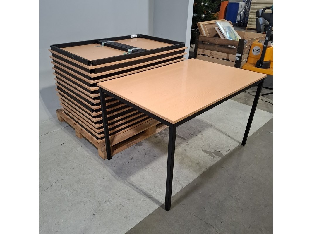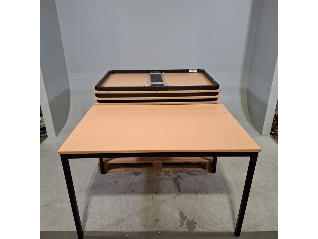 Product: Kantinetafel Afmeting: LxB ca. 120x80 cm. Conditie: gebruikt Specificaties: De tafels hebben diverse beschadigingen.