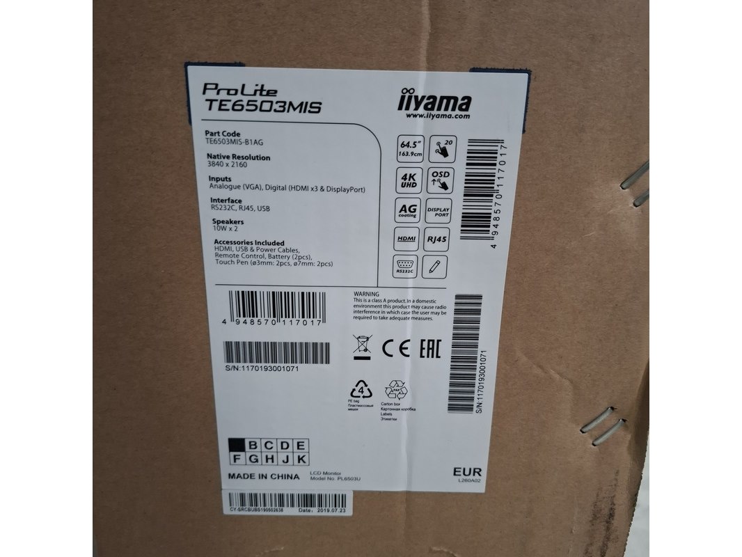 Merk: Iiyama Product: Monitor Afmeting: 64,5'' Conditie: gebruikt Specificaties: Doos is niet geseald.
