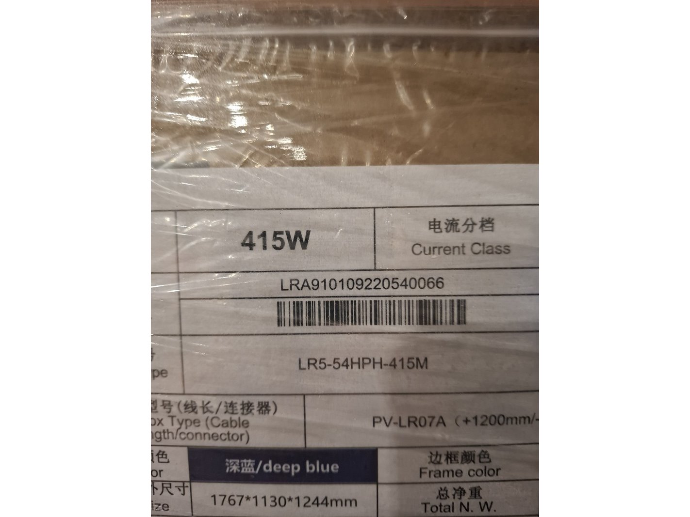 Merk: Longi Product: Zonnepaneel Afmeting: 1722x1134x30mm