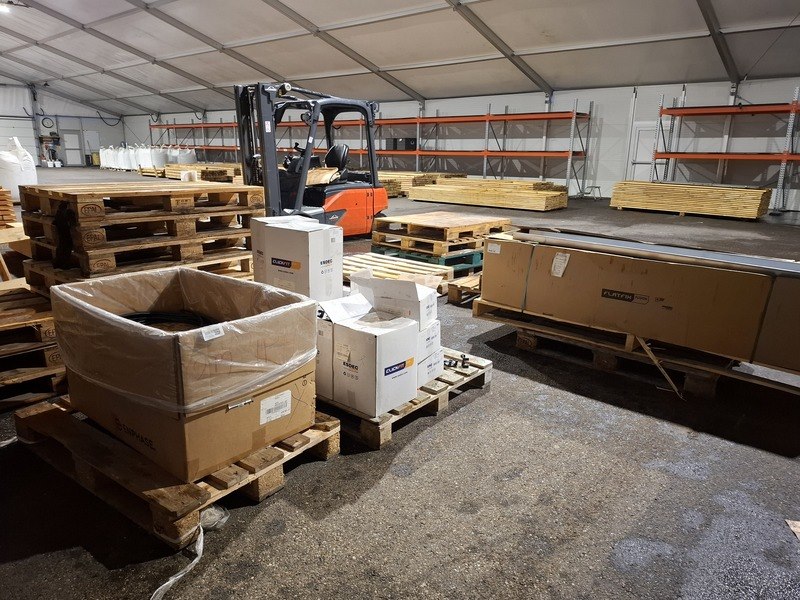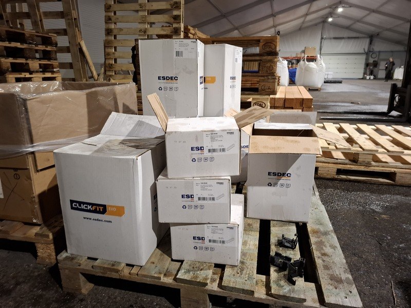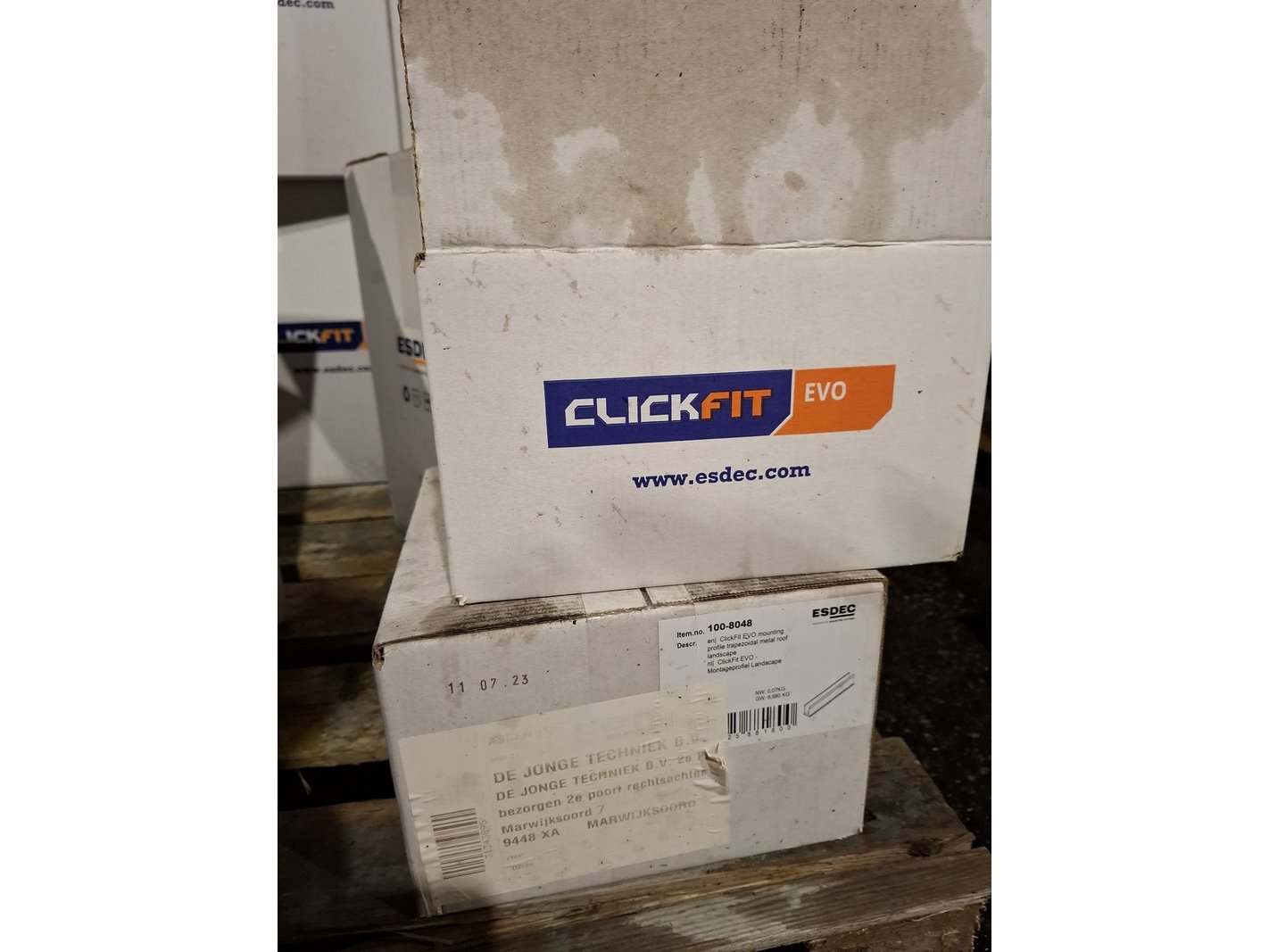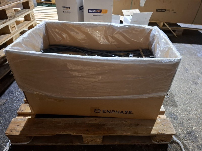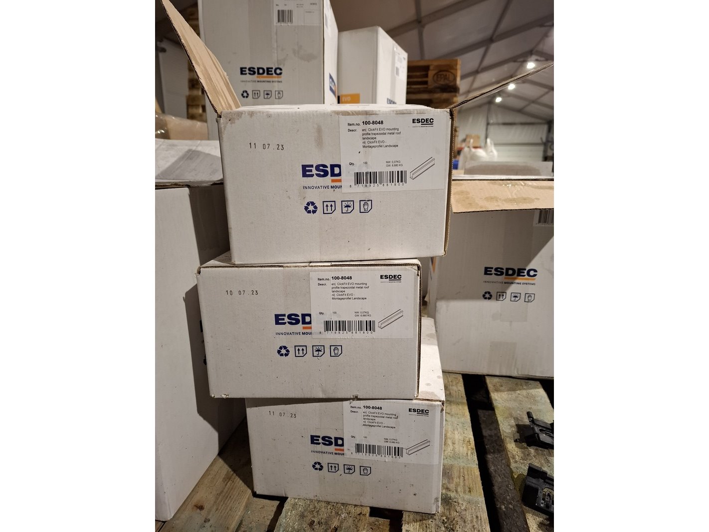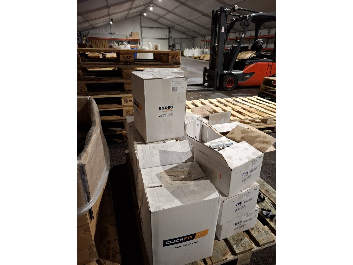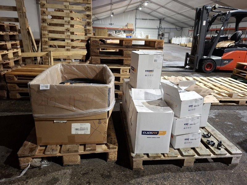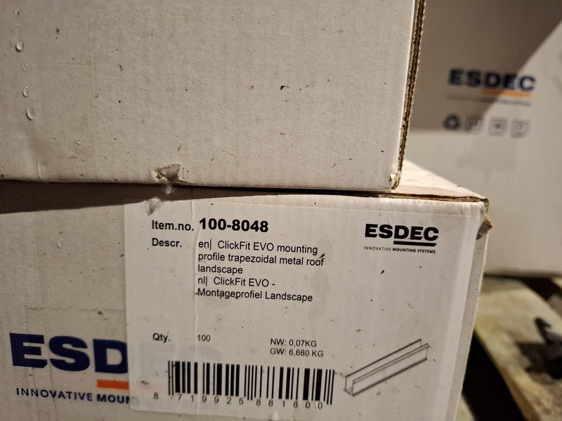 Product: Divers zonnepaneel toebehoren Specificaties: o.a. diverse aluminium en kunststof bevestigingsmateriaal, diverse bekabeling en partij metalen ballast houders op 3x pallet