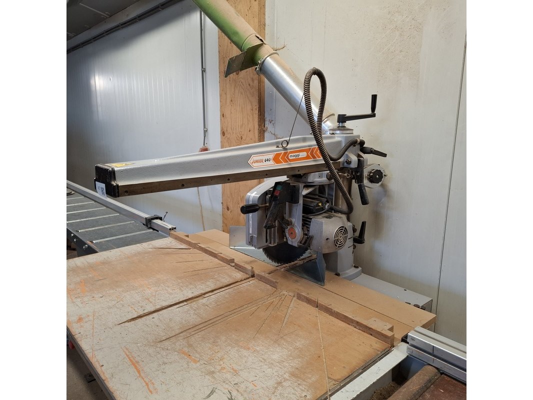 Radiaalzaagmachine met aan en afvoerbaan, maggi, junior 640, 2002