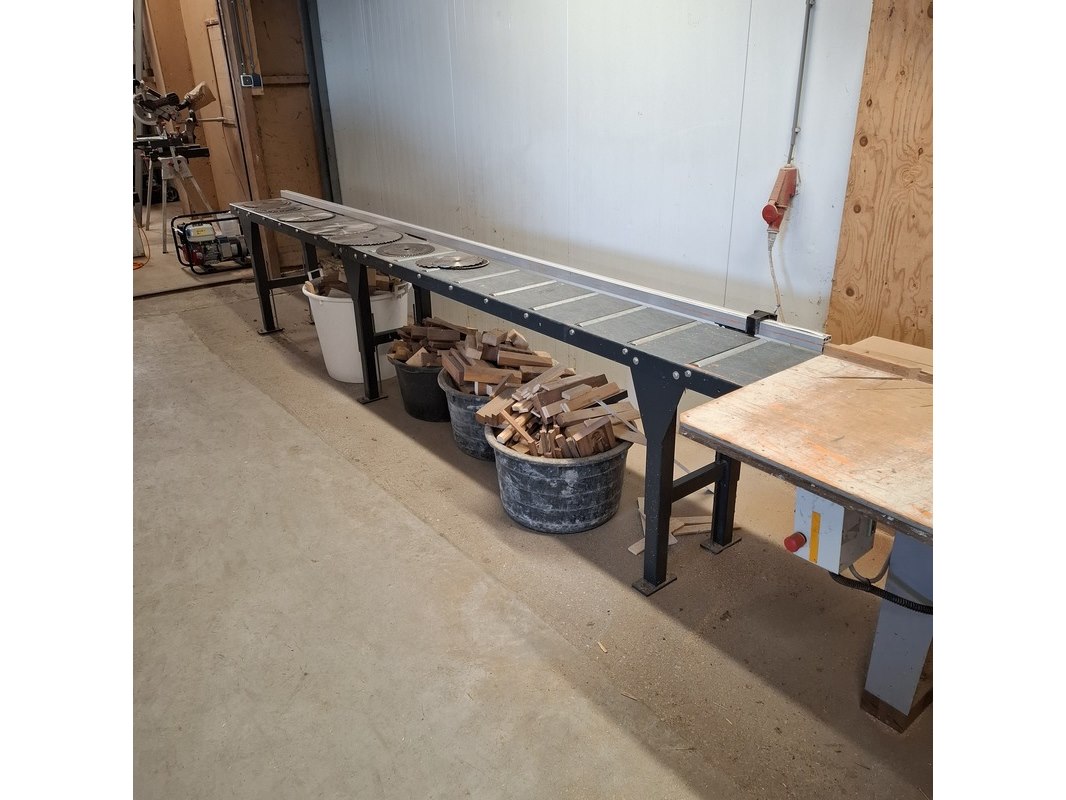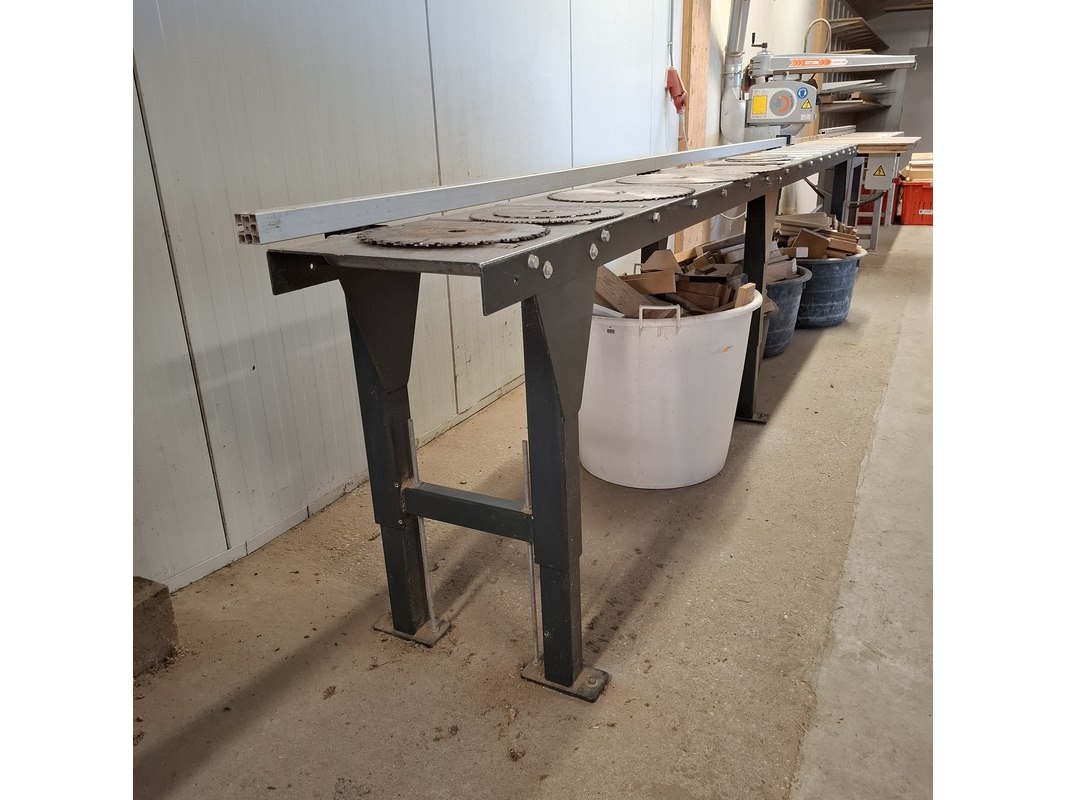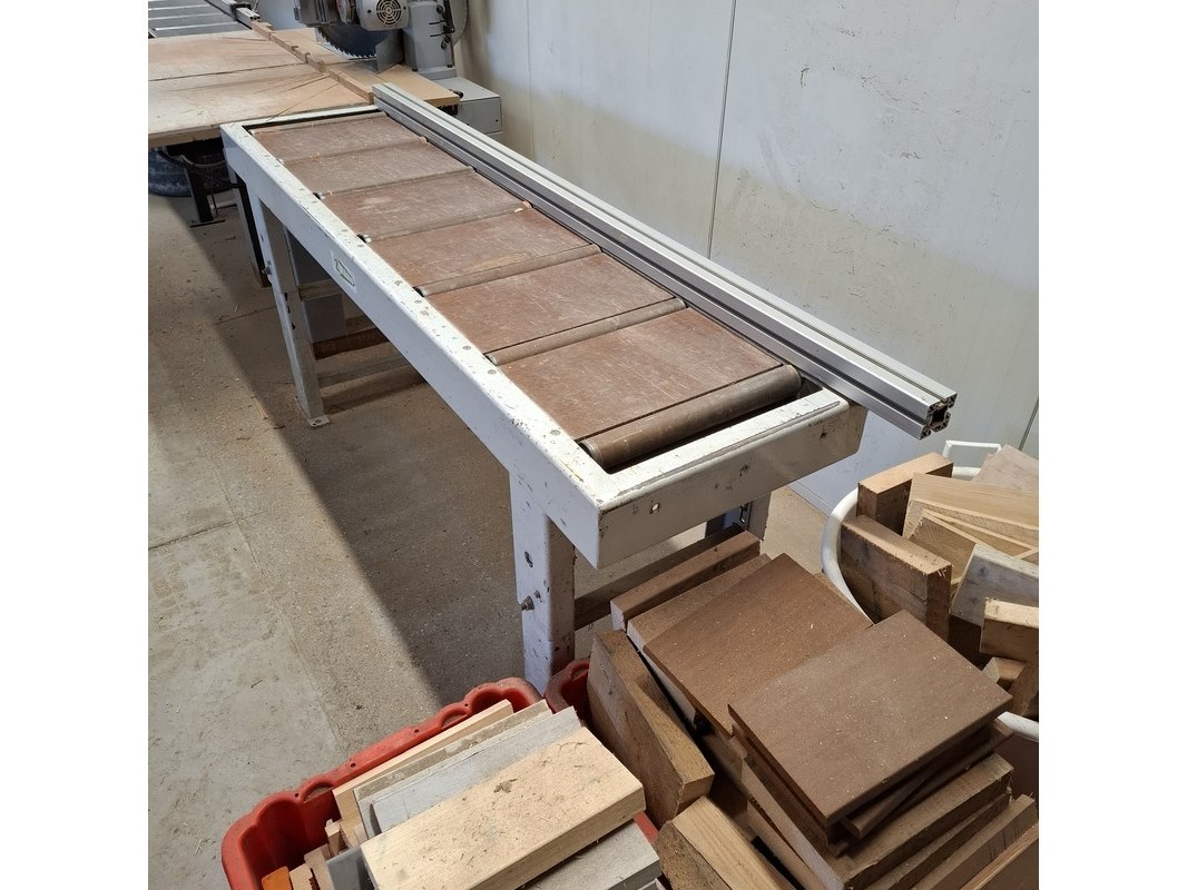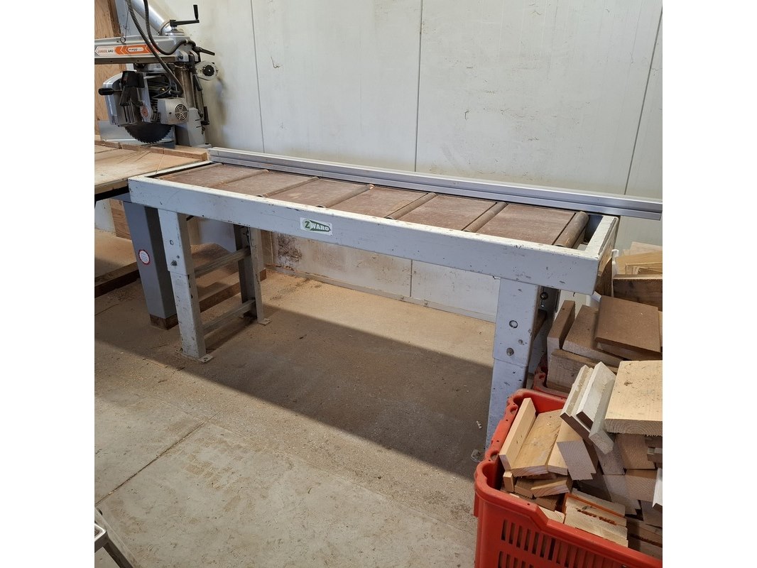 Merk: Maggi Product: Radiaalzaagmachine met aan en afvoerbaan BouwJaar: 2002 Conditie: gebruikt Specificaties: Serienummer: 54310766 380V Afmeting aanvoerbaan lxbxh ca. 435x46x88cm Afmeting zaagtafel met zaag lxbxh ca. 136x132x87/160cm Afmeting afvoerbaan lxbxh ca. 207x51x87cm