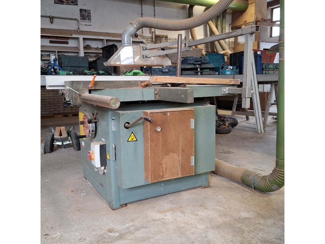 Merk: SCM Product: Cirkelzaagmachine Afmeting: lxbxh ca. 153x161x84/124 cm Conditie: gebruikt