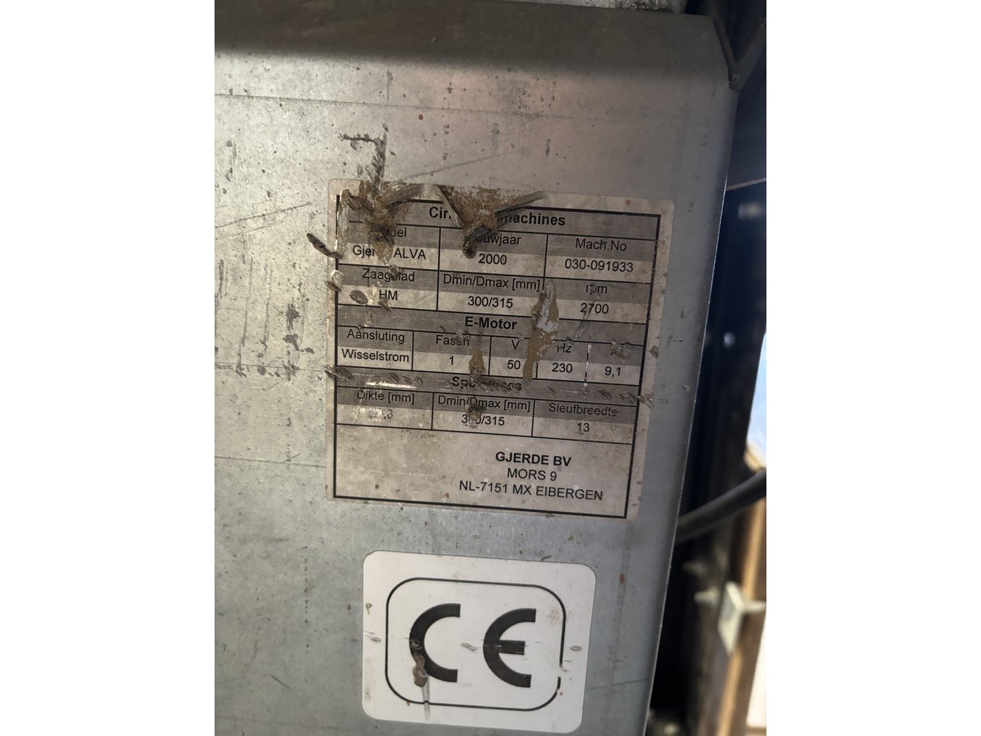 Merk: Gjerde Product: Tafelcirkelzaag BouwJaar: 2000 Conditie: gebruikt Specificaties: 230V, dikte mm 2.8, Dmin/Dmax (mm) 300/315 sleufbreedte 13