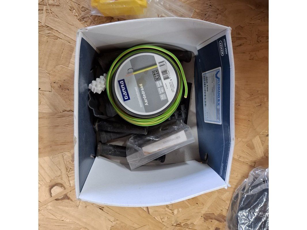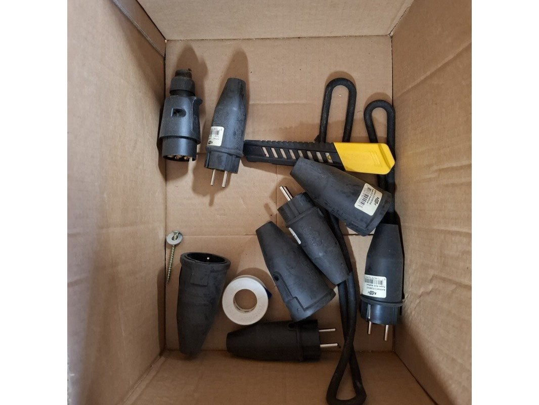Product: Partij verlengkabels Conditie: gebruikt Specificaties: Bestaande uit: o.a. aansluitsnoeren, haspel, verlengleiding, diverse verlengsnoeren etc.