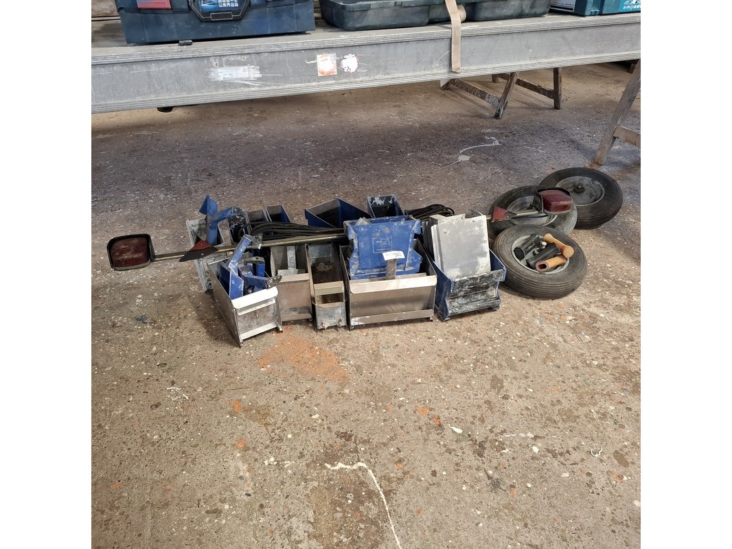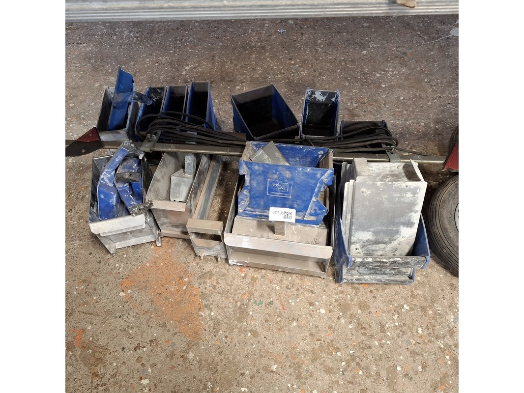 Product: Partij diversen Conditie: gebruikt Specificaties: Bestaande uit o.a.: Lijmbakken voor kalkzandsteen in diverse soorten en maten, verlichtingsbalk en 3x kruiwagenwiel.