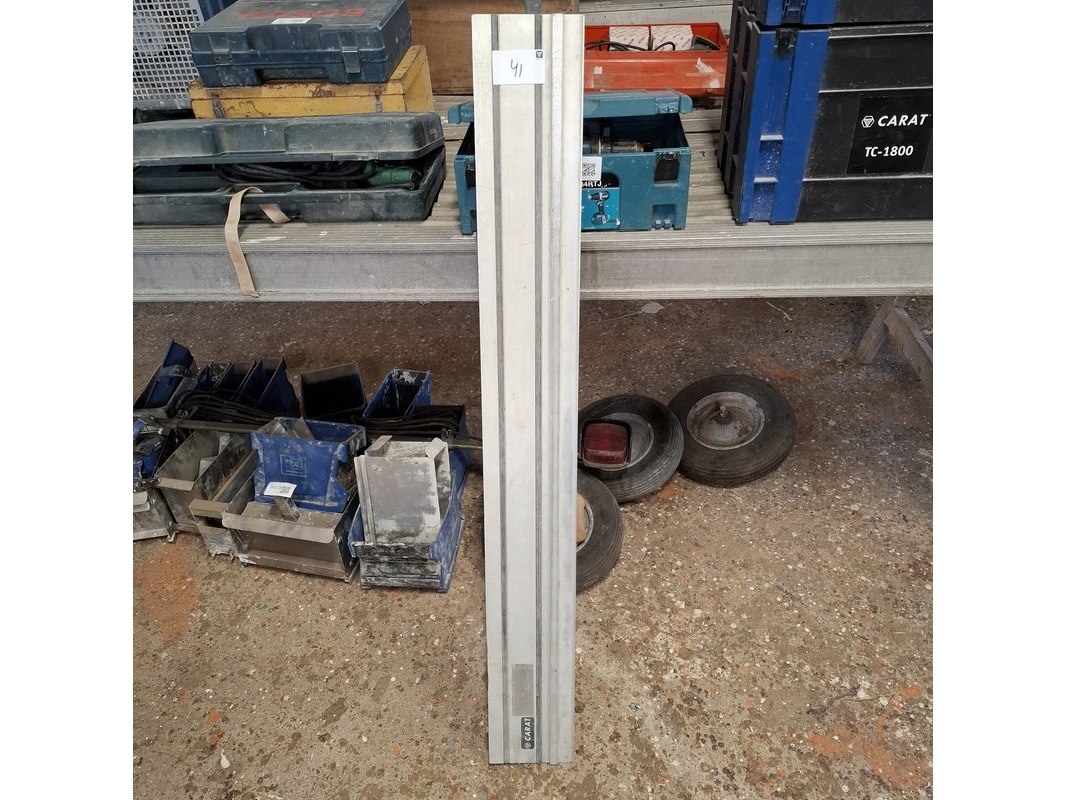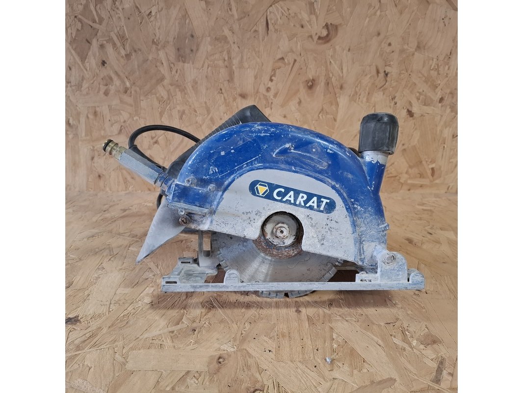 Merk: Carat Product: Diamantcirkelzaag met geleiderail Afmeting: Geleiderail 140cm Conditie: gebruikt Specificaties: 230V, 1,8kW, in koffer