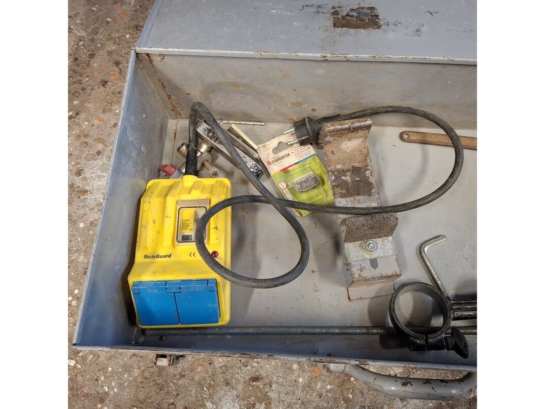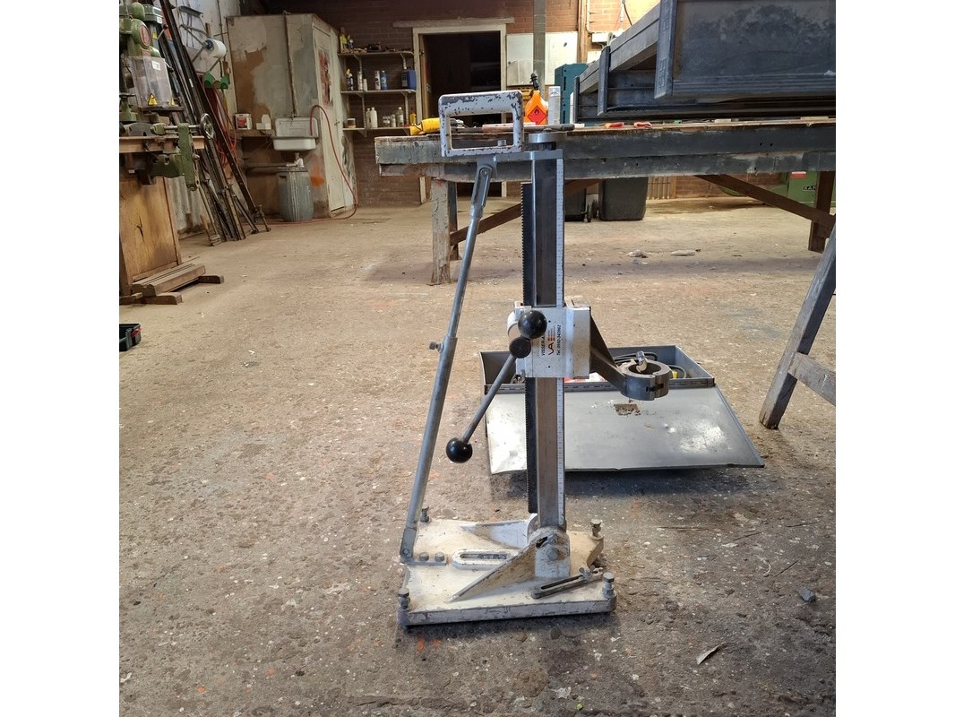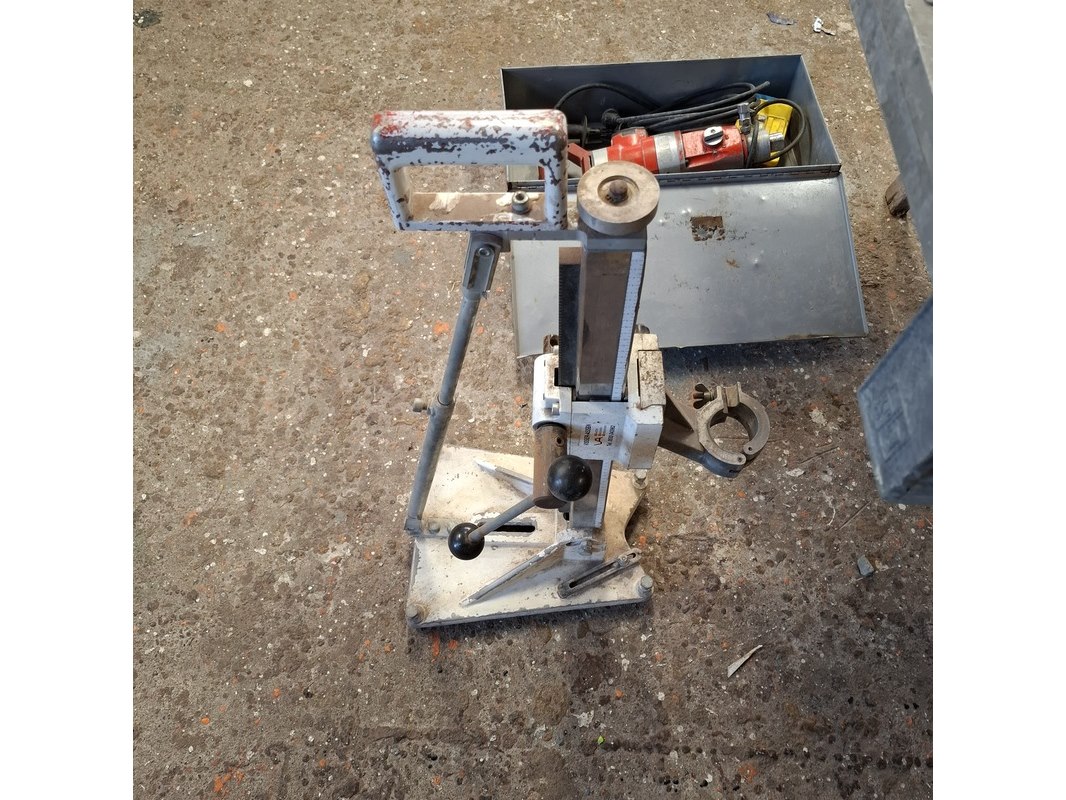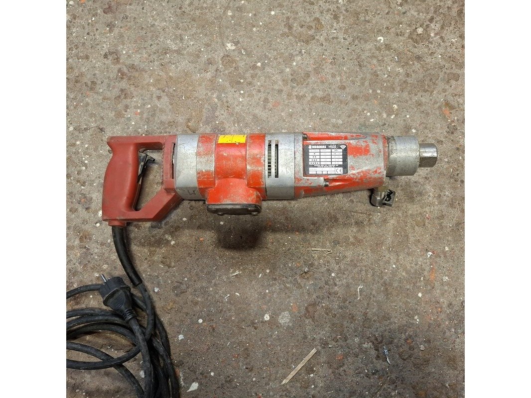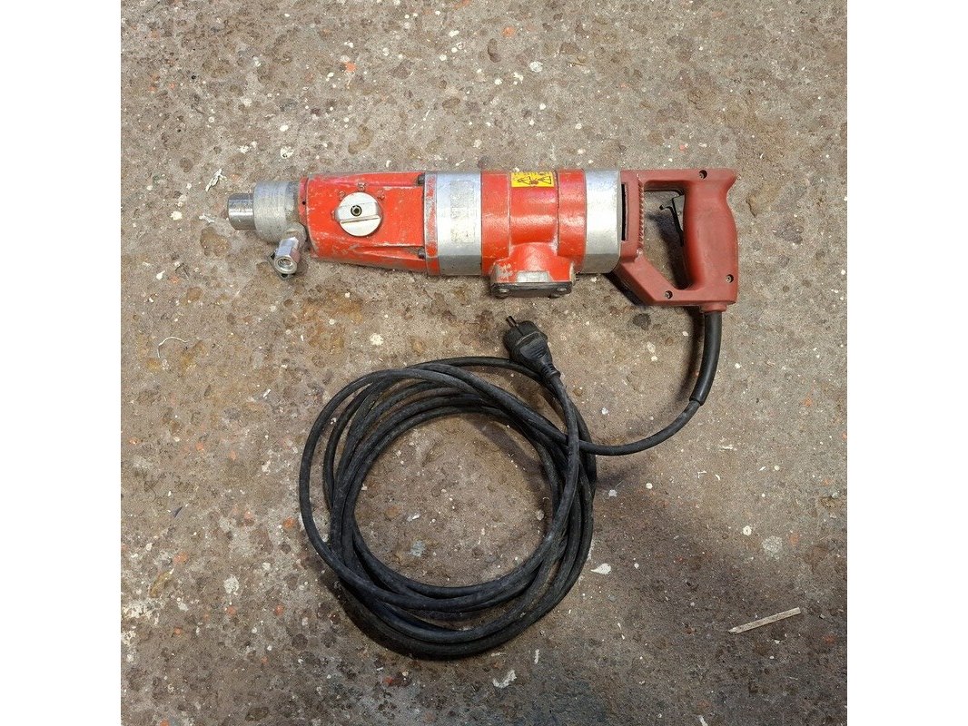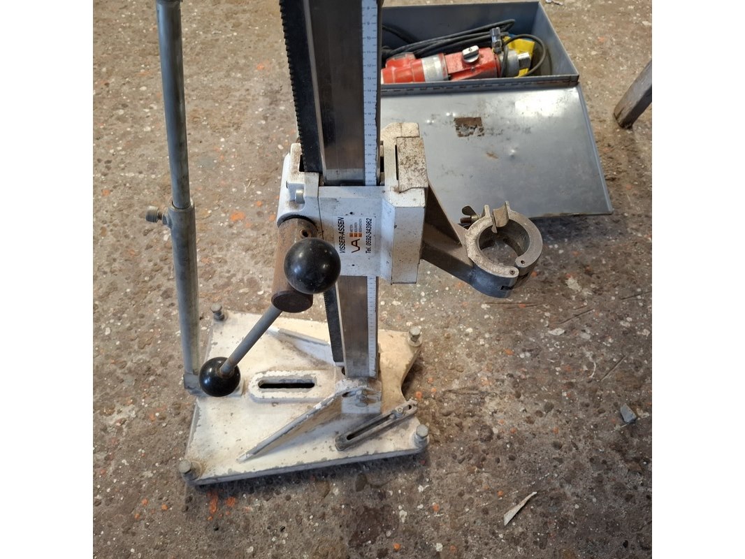 Merk: Adamas Product: Elektrische diamantboormachine met statief Conditie: gebruikt Specificaties: 230V, 1600W, inclusief toebehoren en kist