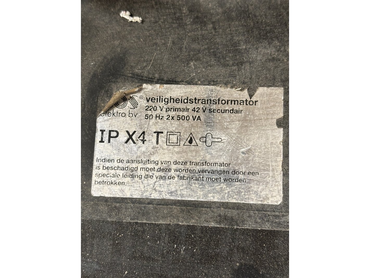 Product: Transformator Conditie: gebruikt Specificaties: 220V, 42V secundair 50Hz, 2x 500 VA