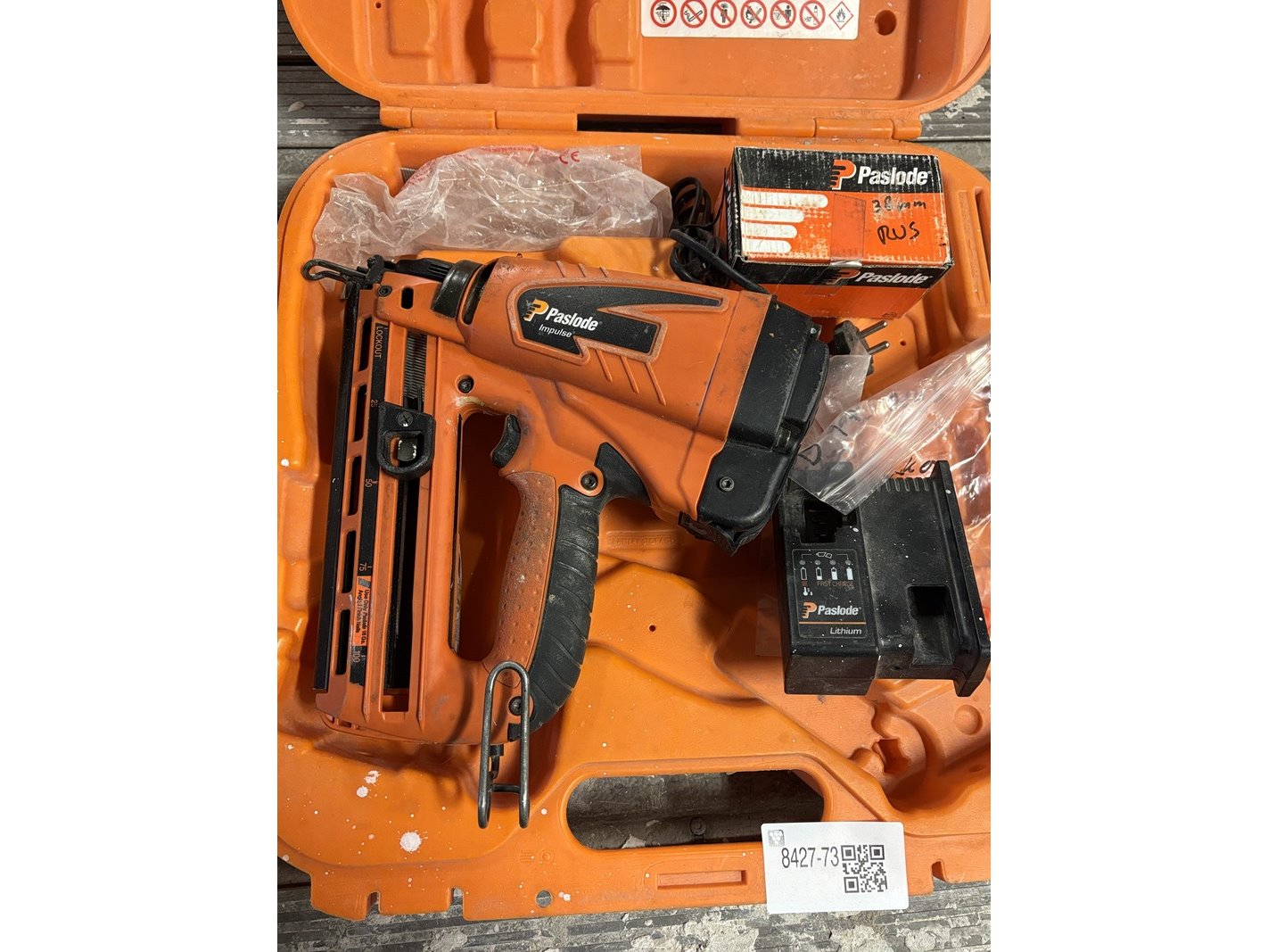 Merk: Paslode Product: Accu tacker Conditie: gebruikt Specificaties: Inclusief lader, in koffer