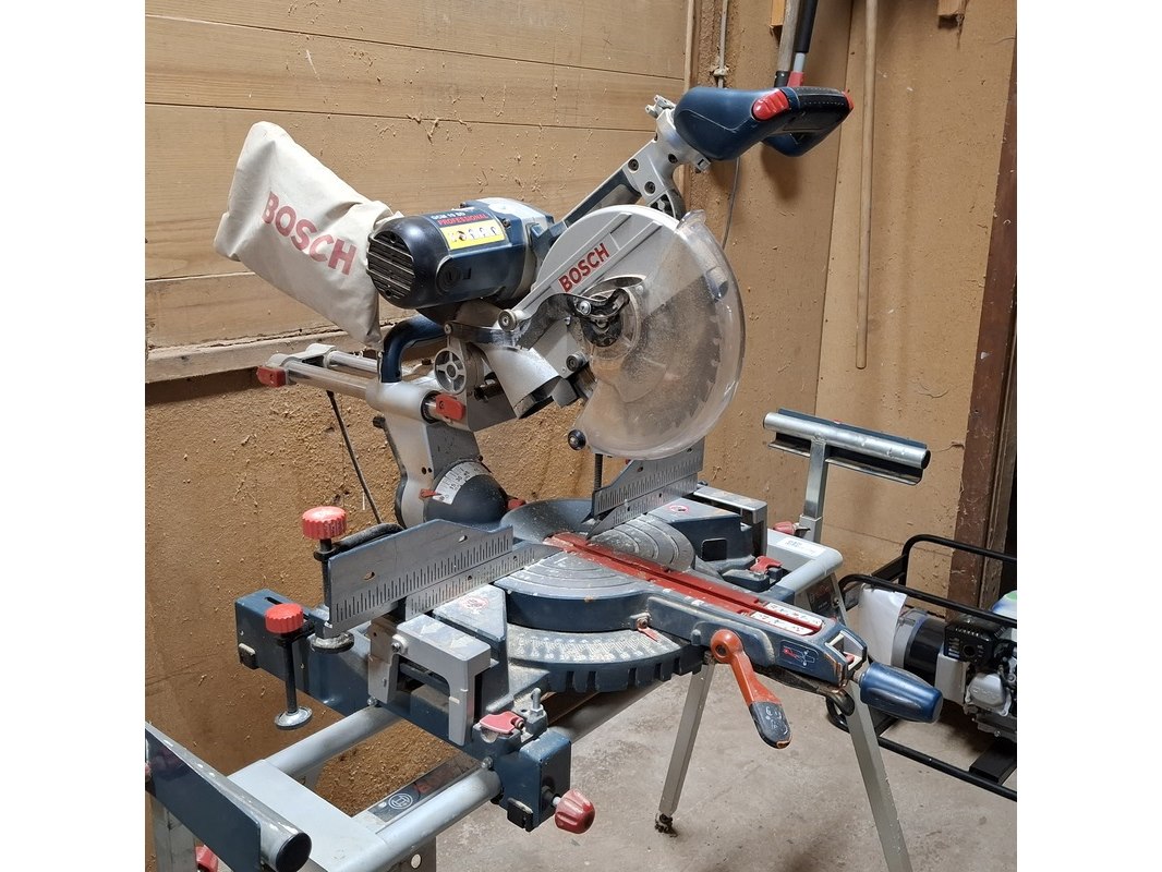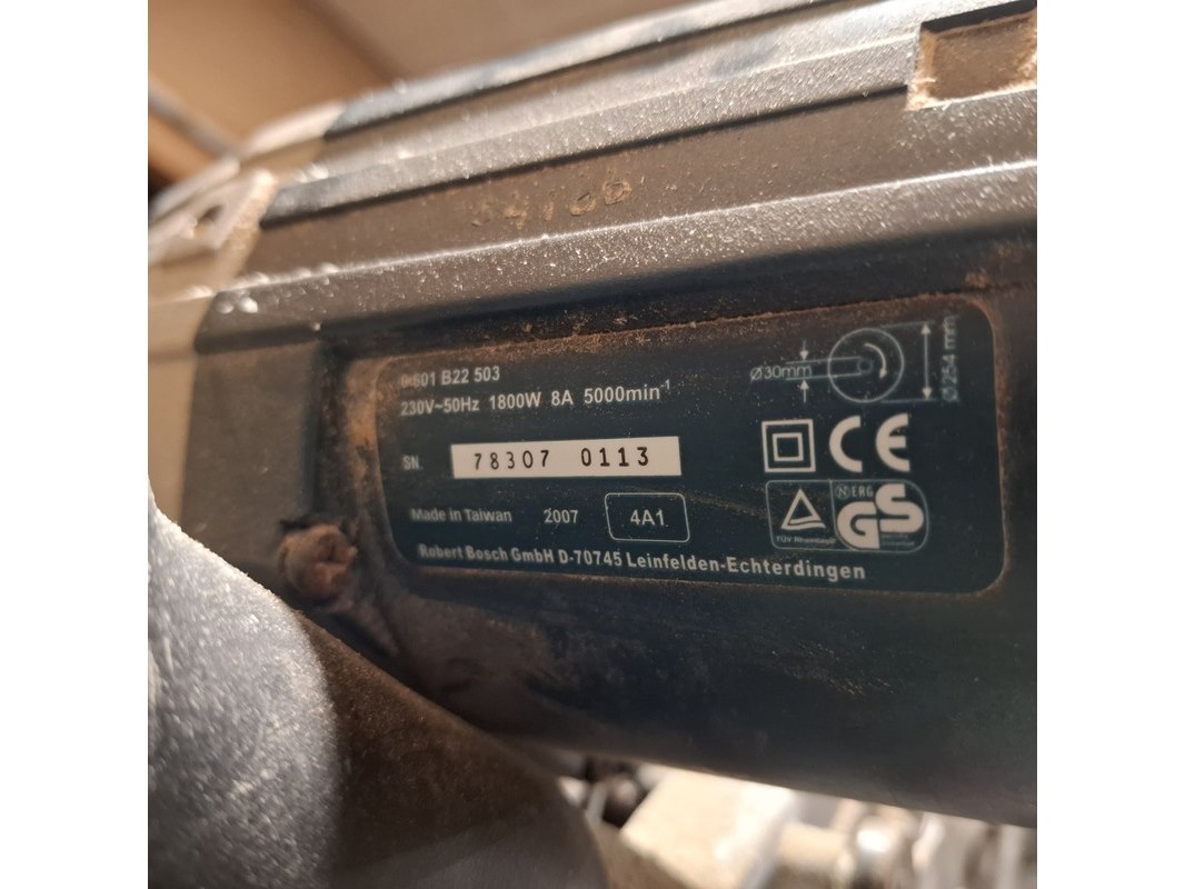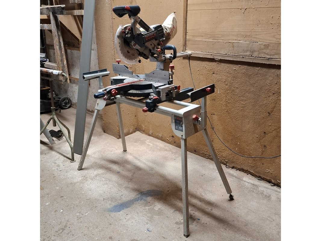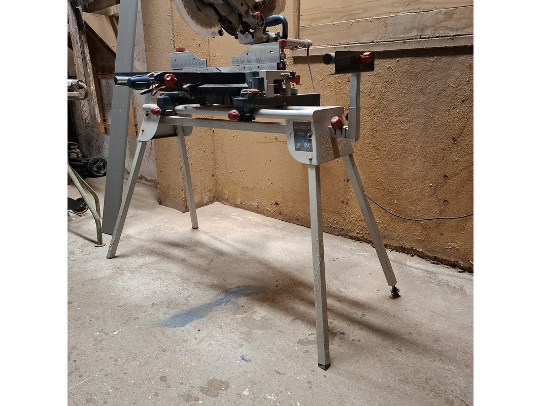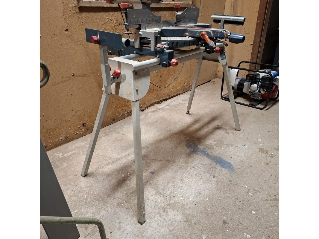 Merk: Bosch Product: Afkortzaag BouwJaar: 2007 Conditie: gebruikt Specificaties: 230V, 1800 Watt, inclusief onderstel Bosch GTA 2600 met extra zaagblad