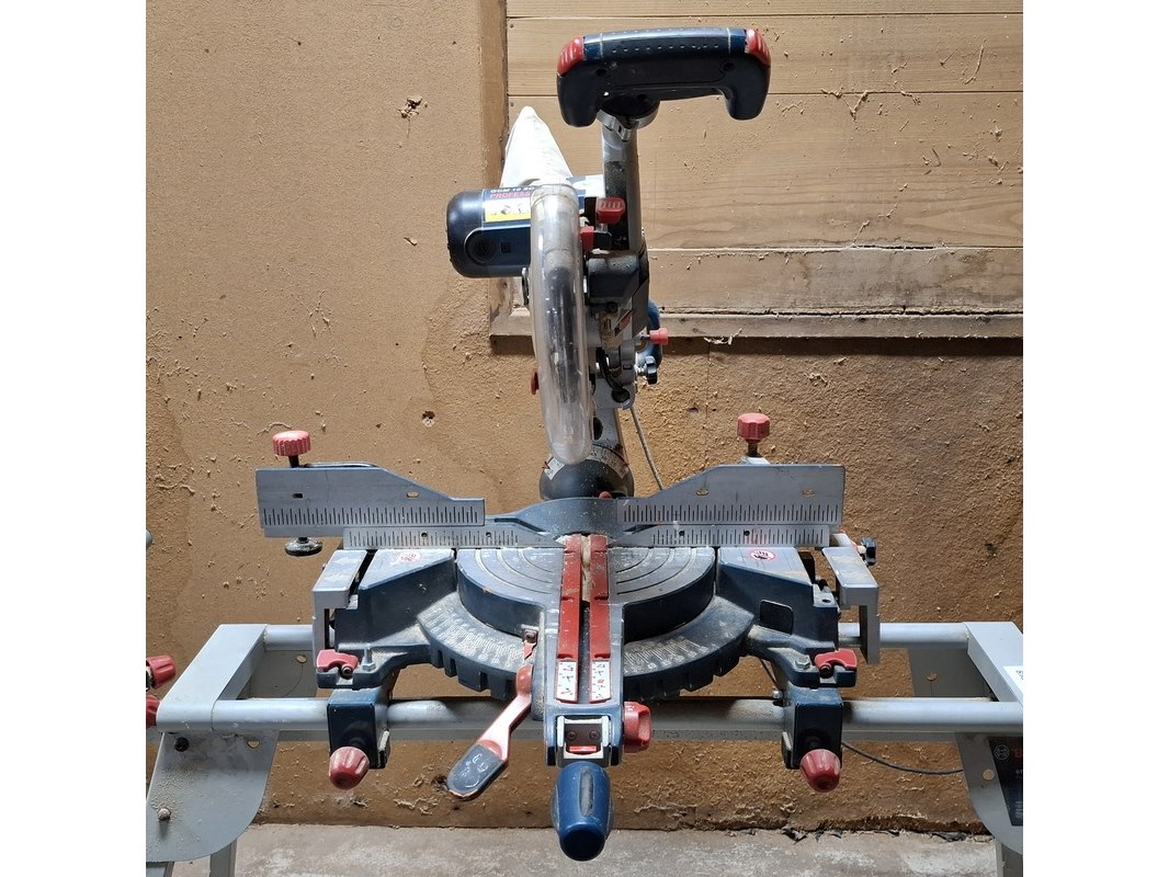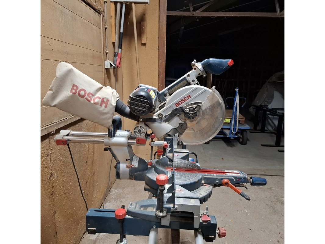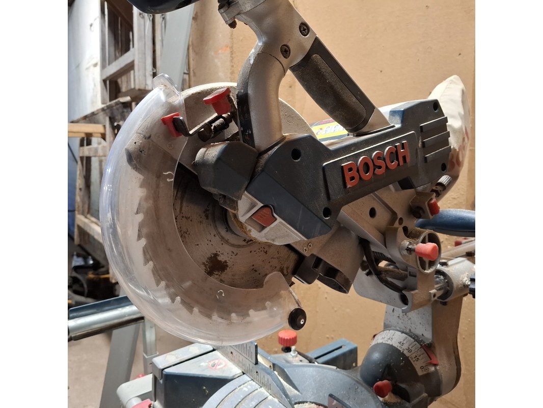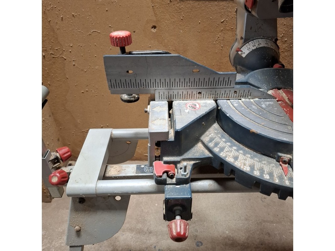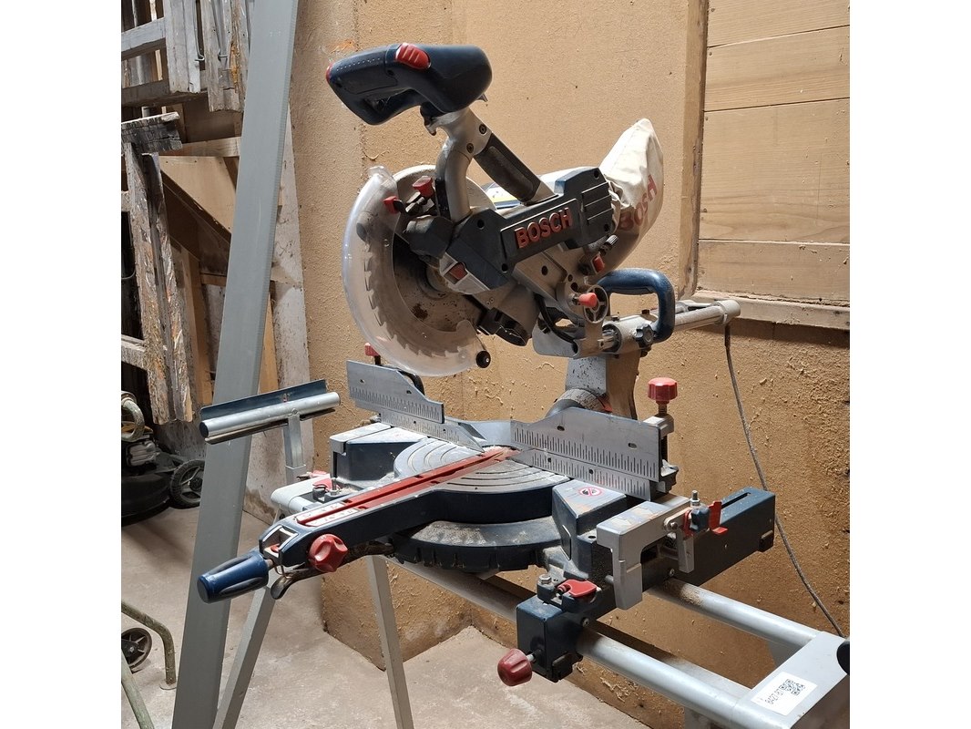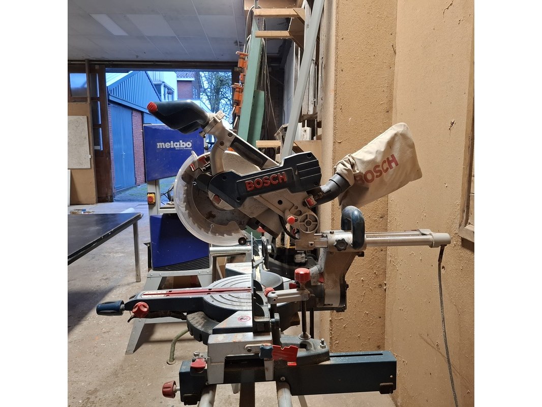 Merk: Bosch Product: Afkortzaag BouwJaar: 2007 Conditie: gebruikt Specificaties: 230V, 1800 Watt, inclusief onderstel Bosch GTA 2600 met extra zaagblad