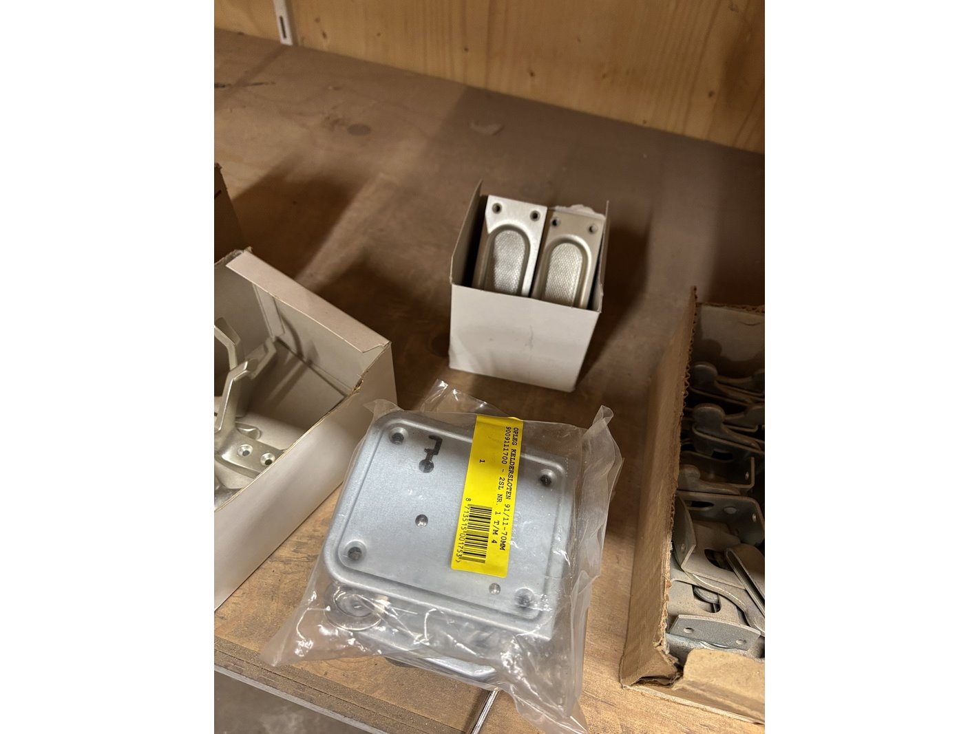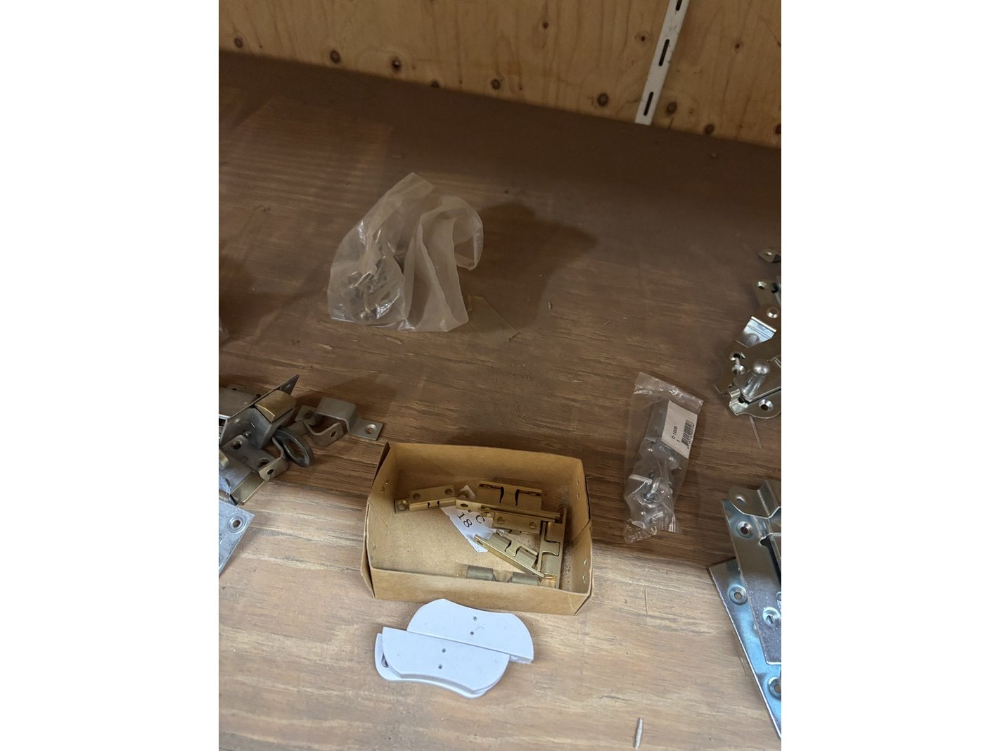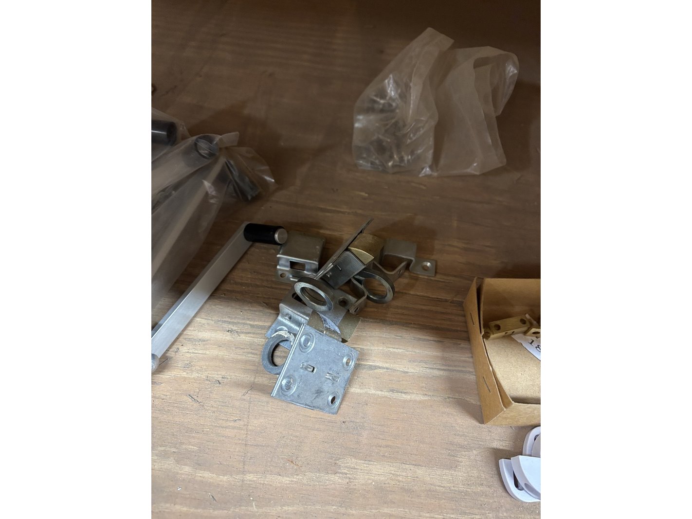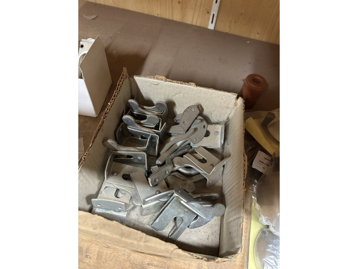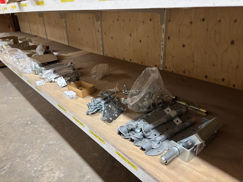 Product: Partij divers ijzerwaar Specificaties: Bestaande uit o.a. schuifgrendels, valgrendels, kogelsnapsloten, raamvalijzers, deurbuffers RVS, leuningdragers, heksluitingen automatisch, opleg keldersloten, etc.