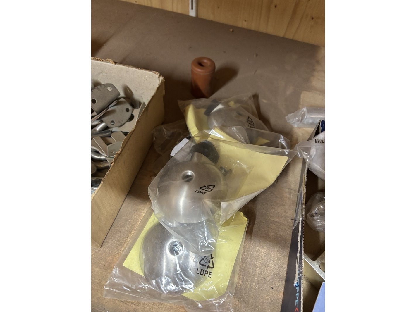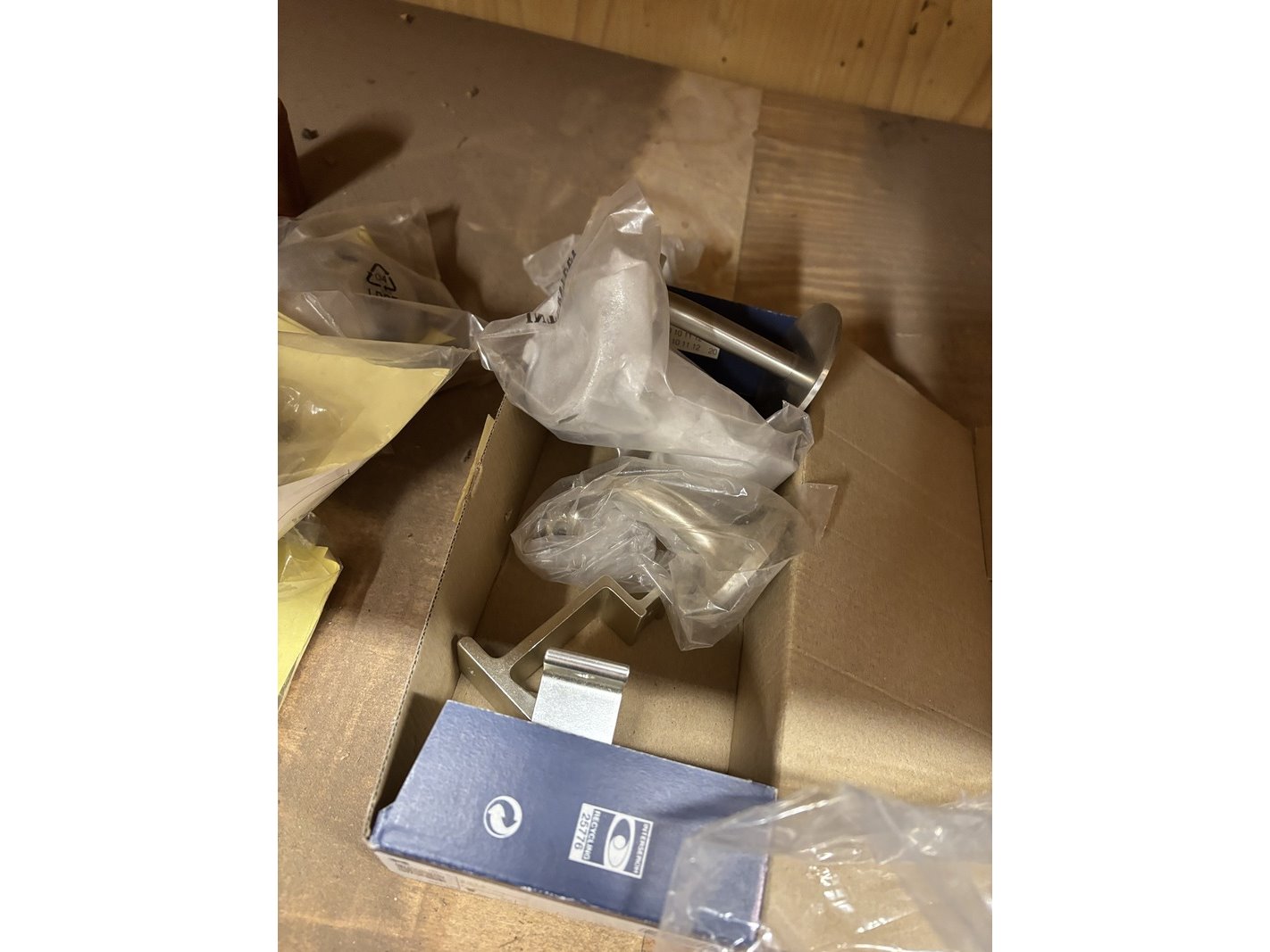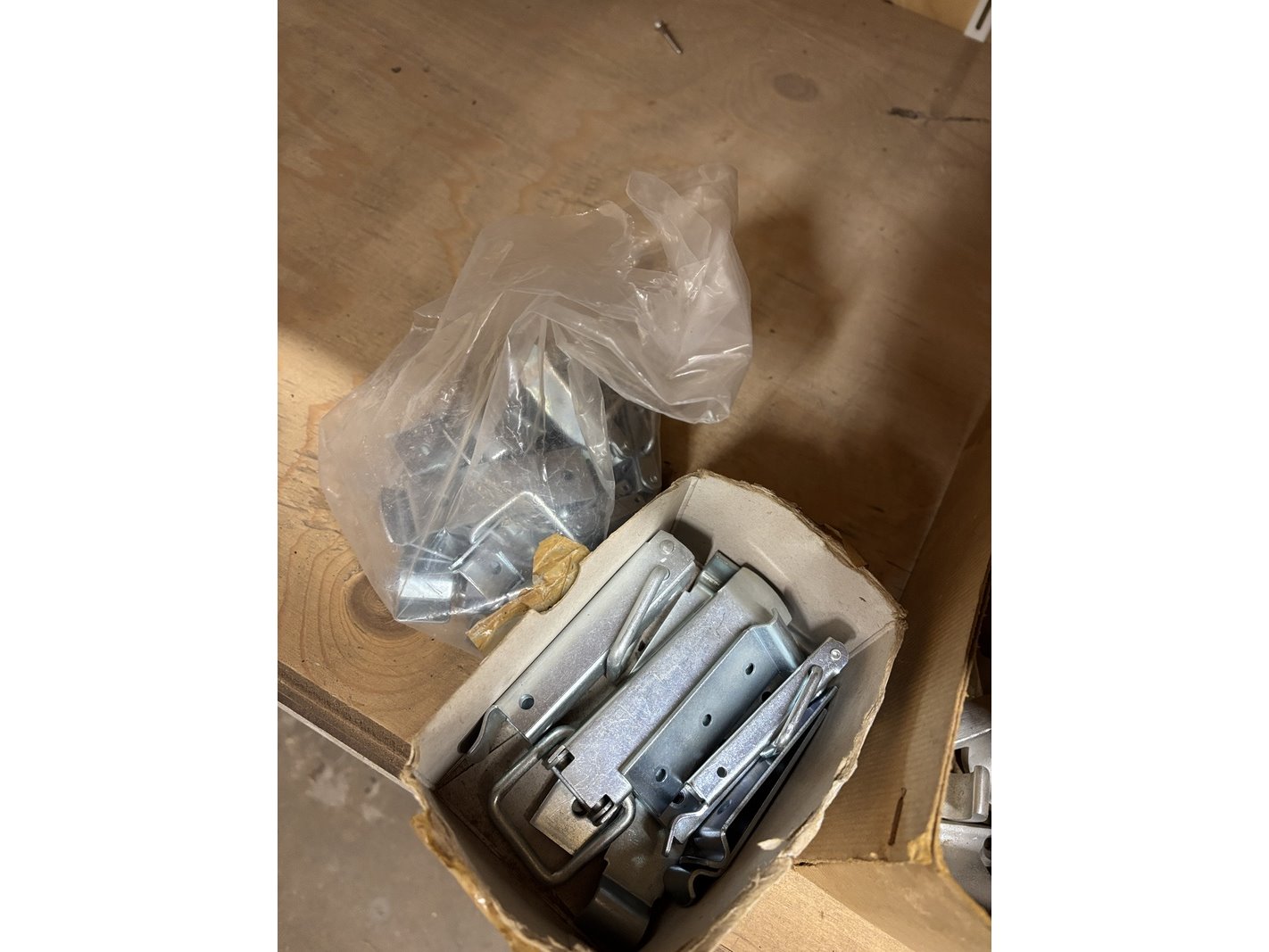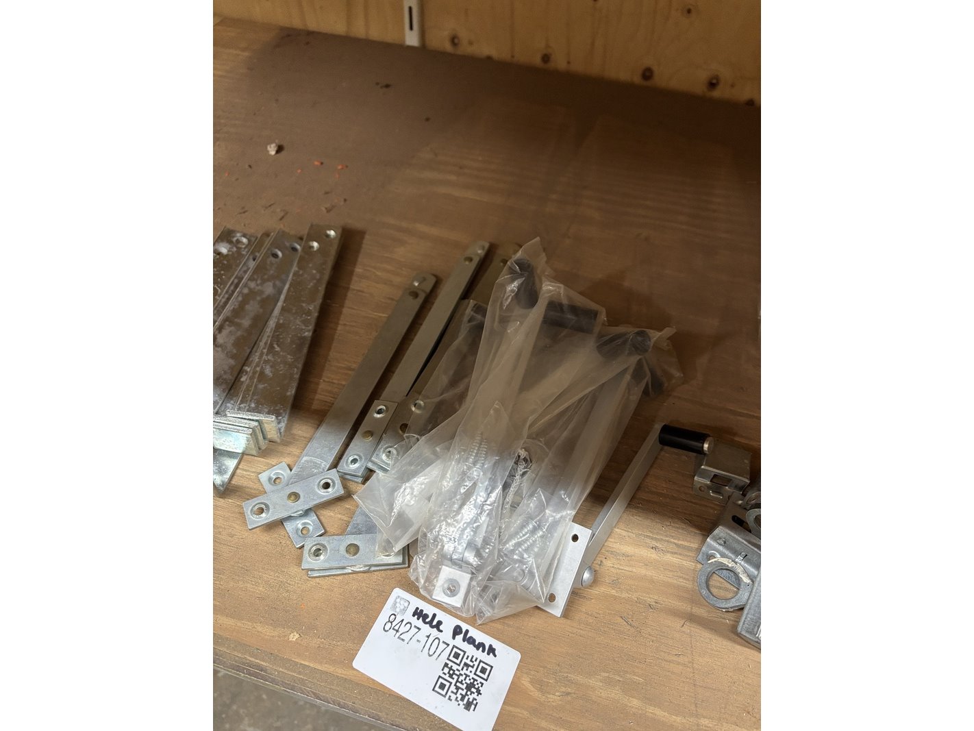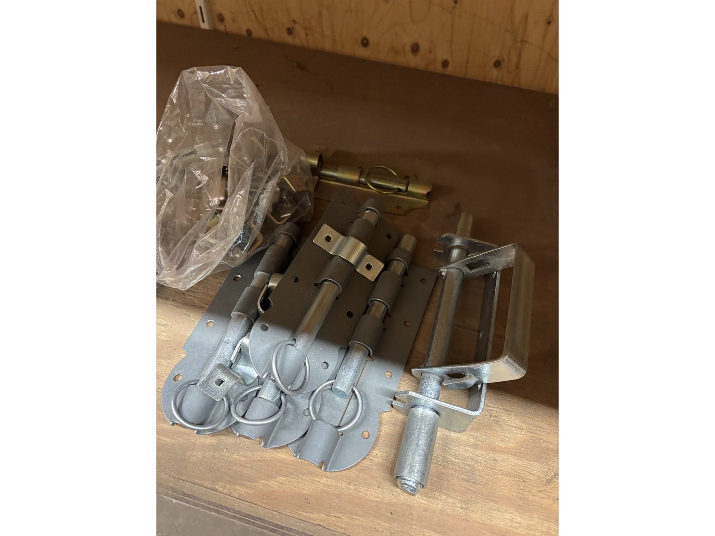 Product: Partij divers ijzerwaar Specificaties: Bestaande uit o.a. schuifgrendels, valgrendels, kogelsnapsloten, raamvalijzers, deurbuffers RVS, leuningdragers, heksluitingen automatisch, opleg keldersloten, etc.