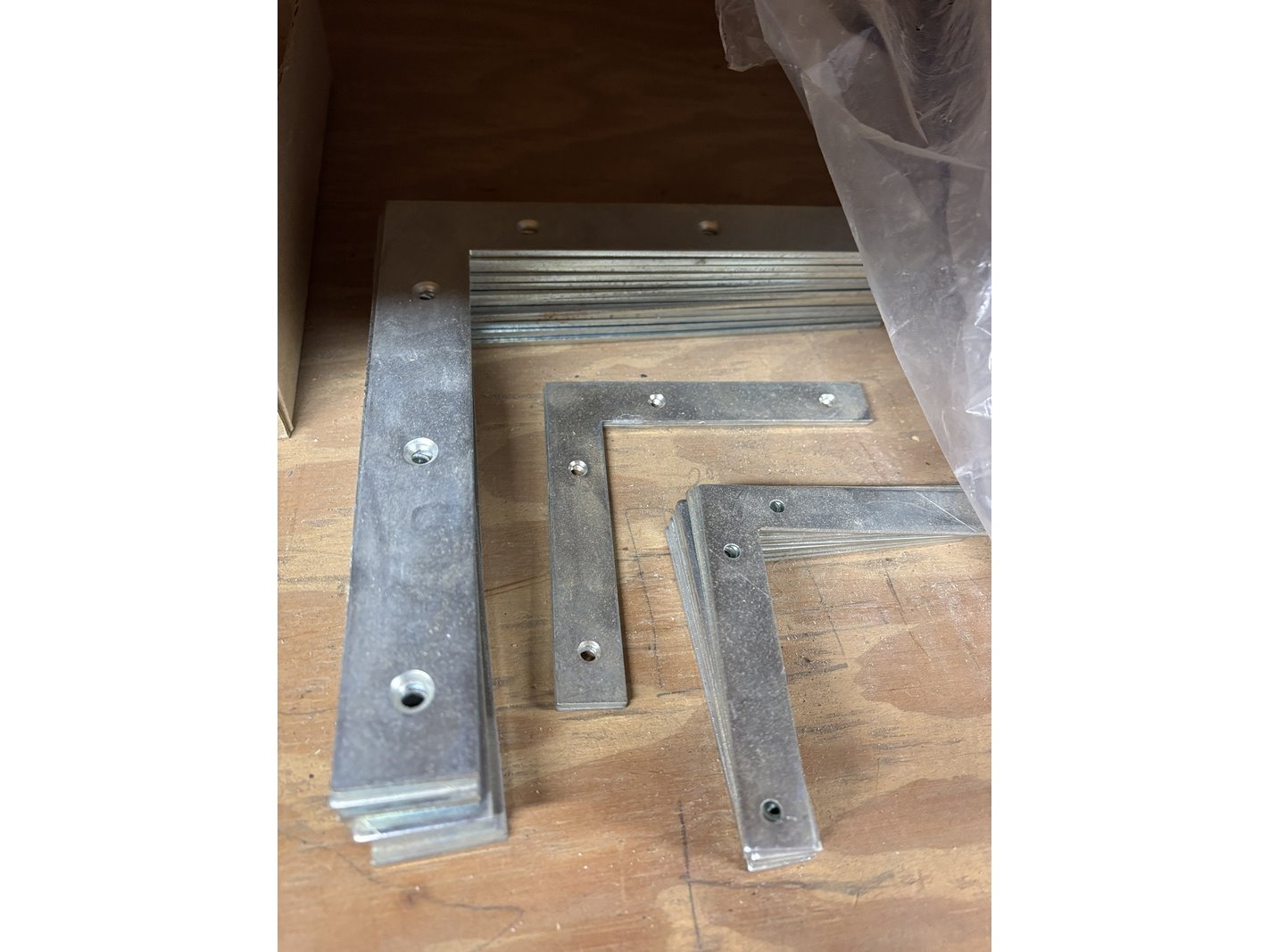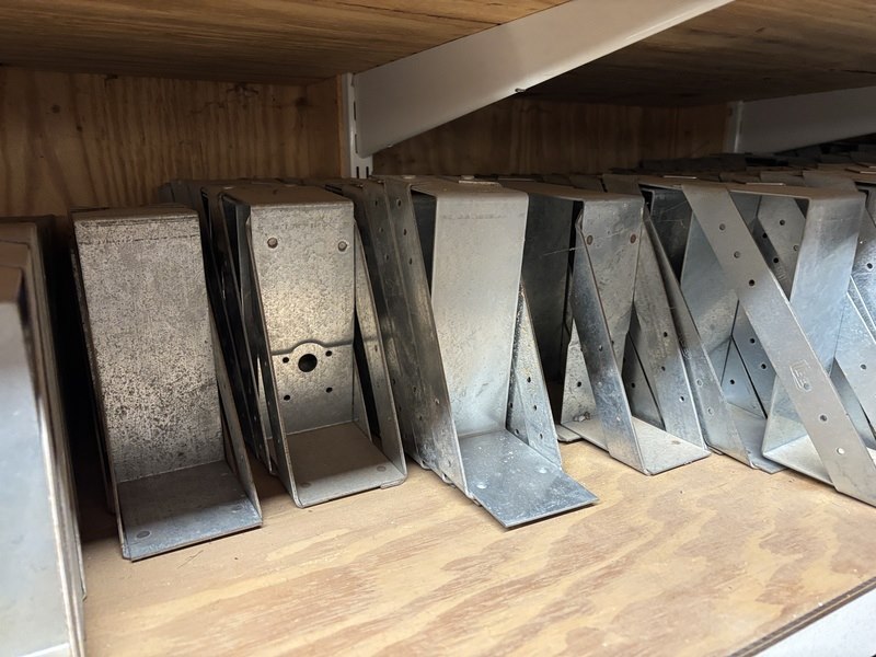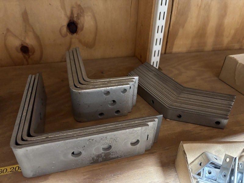 Product: Partij divers ijzerwaar Specificaties: Bestaande uit o.a. verbindingsplaten, spijkerplaten, diverse hoekankers, diverse stoelhoeken, divers isolatie bevestigingsmateriaal, divers gordingglas.
