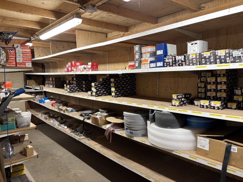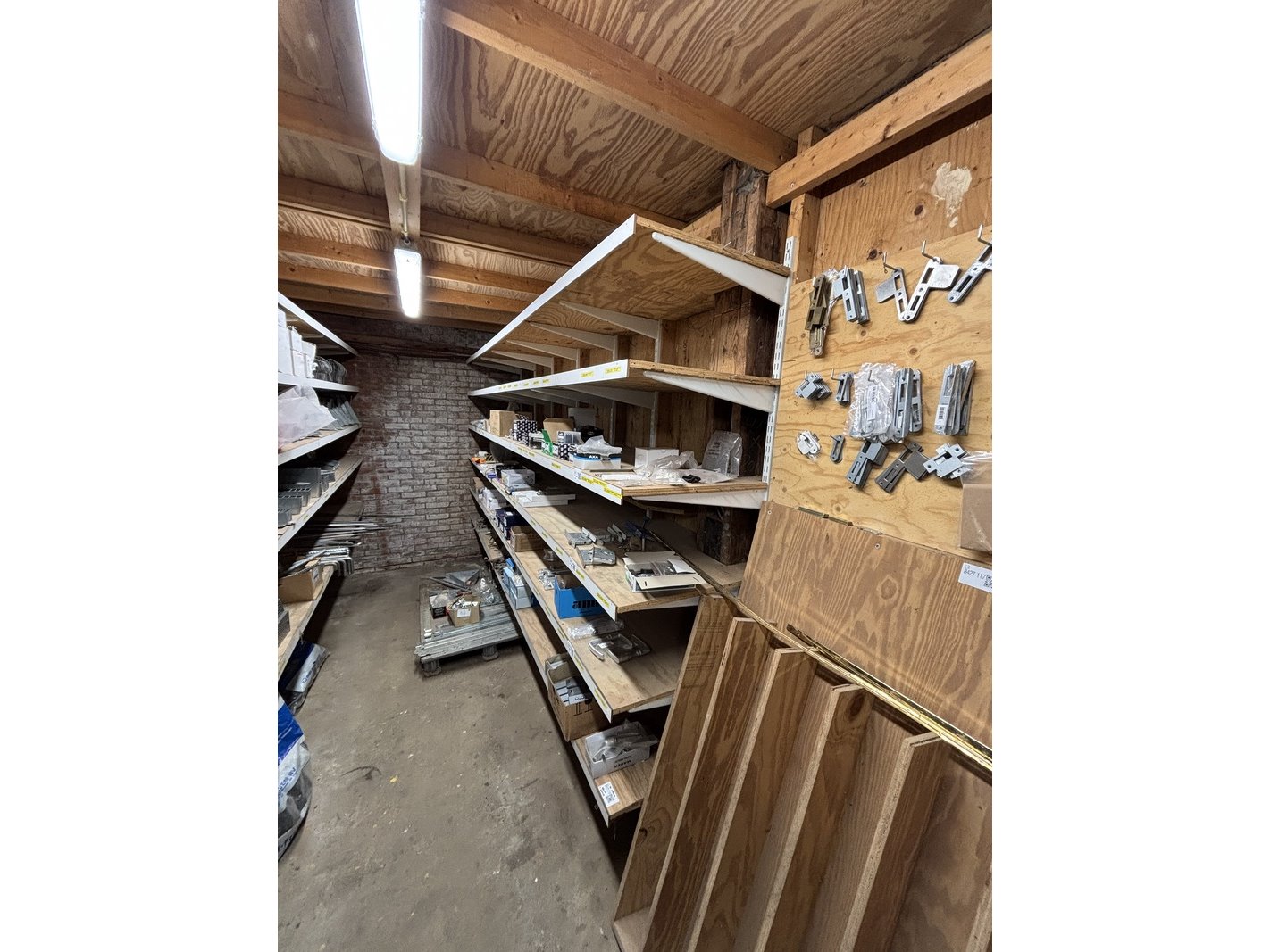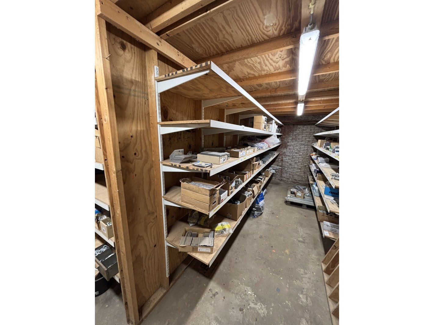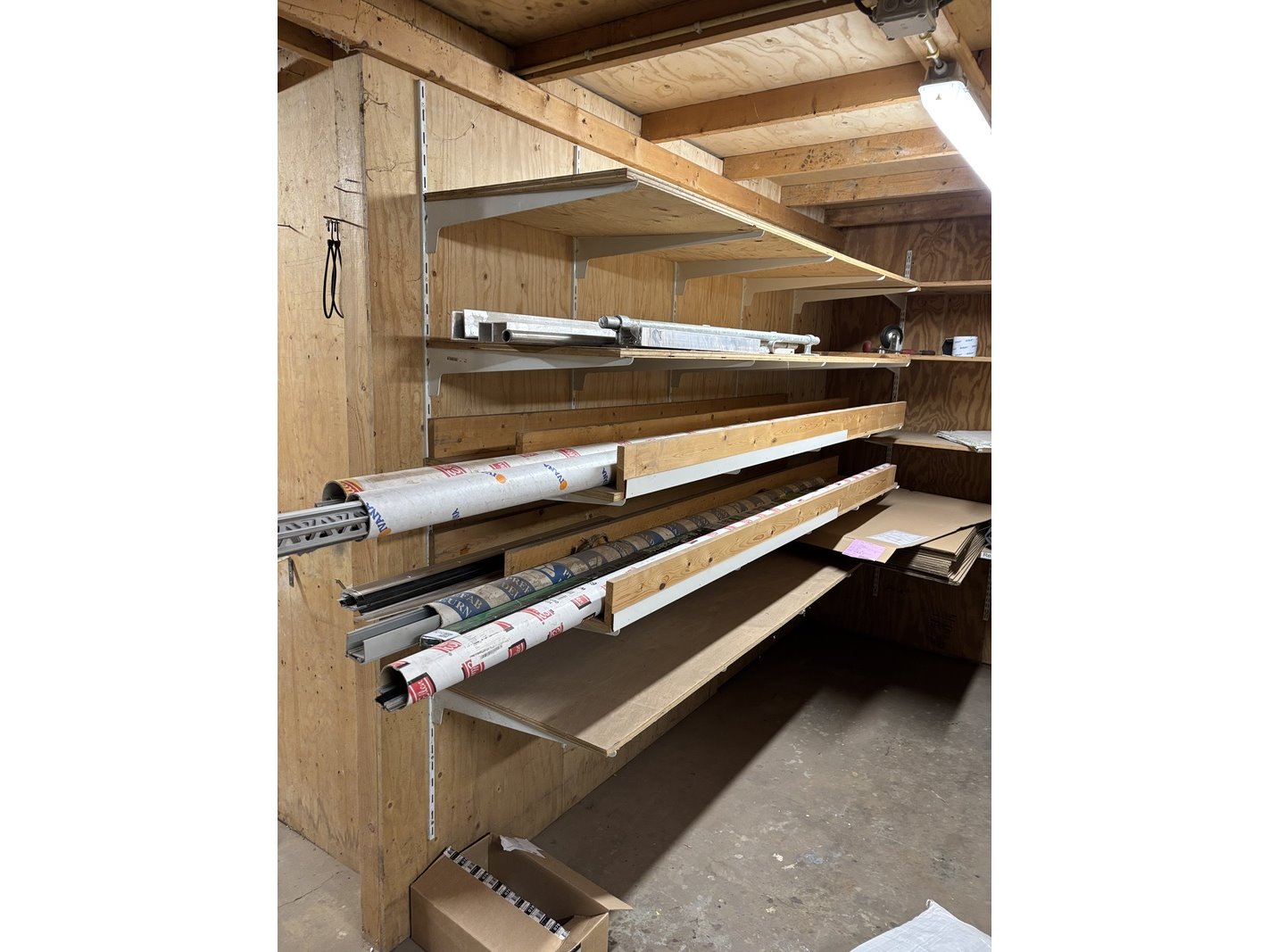 Product: Inhaak wandstelling met legborden Conditie: gebruikt Specificaties: Deel 1, 5x plank bxd ca. 717x63 cm, deel 2 6x plank bxd ca. 245x42.5 cm, deel 3 5x plank bxd ca. 485x61 cm, deel 4 6x plank bxd ca. 361x61 cm. Inclusief 34x rails en 177x plankdrager.