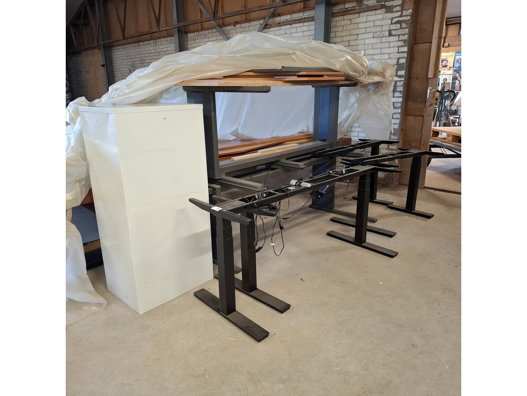 Product: Hoekopstelling bureau deels in hoogte verstelbaar Conditie: gebruikt Specificaties: Inclusief kast