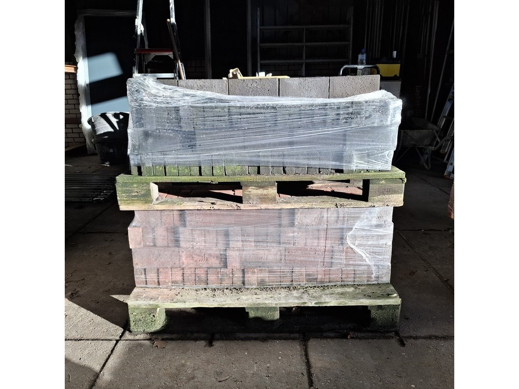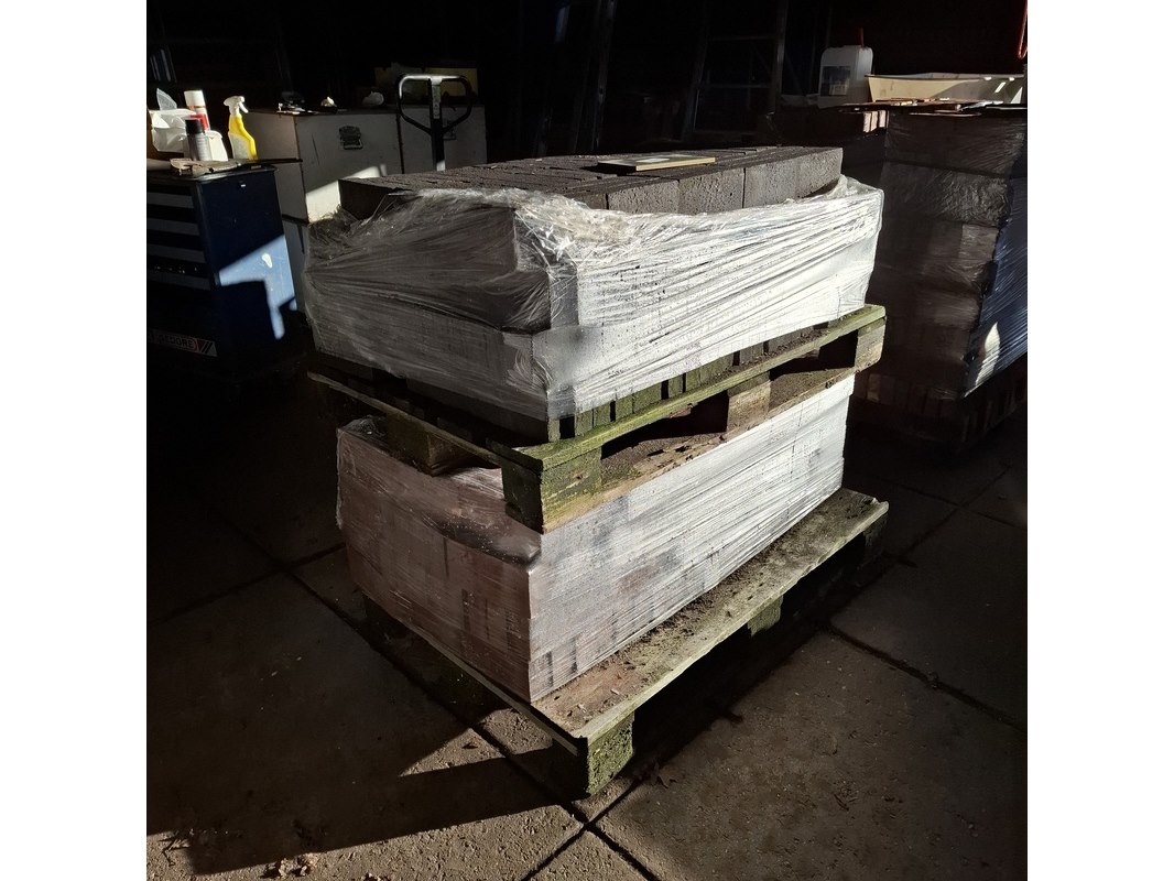 Product: Gevelsteen Specificaties: 225x gevelsteen zwart en 240x gevelsteen oudroze renovatie formaat, 55 mm dik.