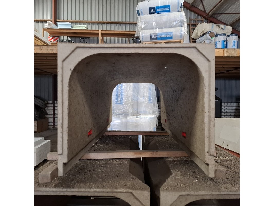 Merk: Poly drain Product: Polyester betongoten Afmeting: 39 cm hoog, 45 cm breed, 100 cm lang Conditie: gebruikt