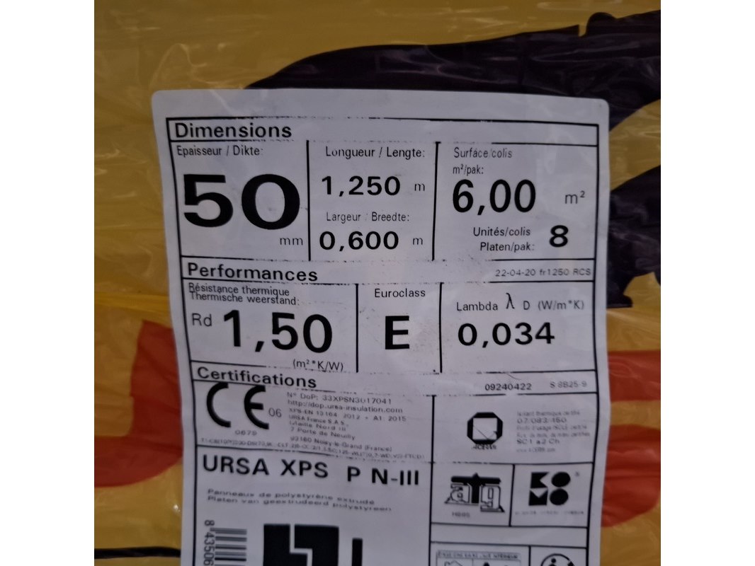 Merk: Ravatherm Product: Isolatiemateriaal Afmeting: 60x125 cm Specificaties: 38x 30 mm, 23x 40 mm, 9x 50 mm, 1x 60 mm en 2x 80 mm