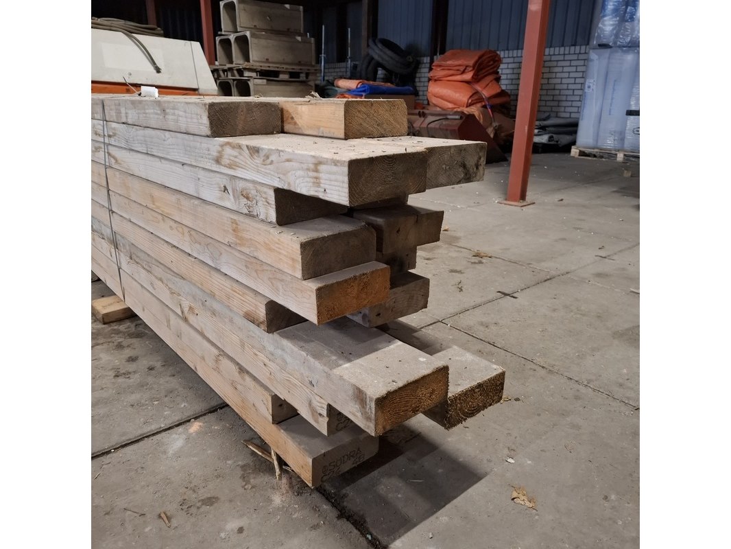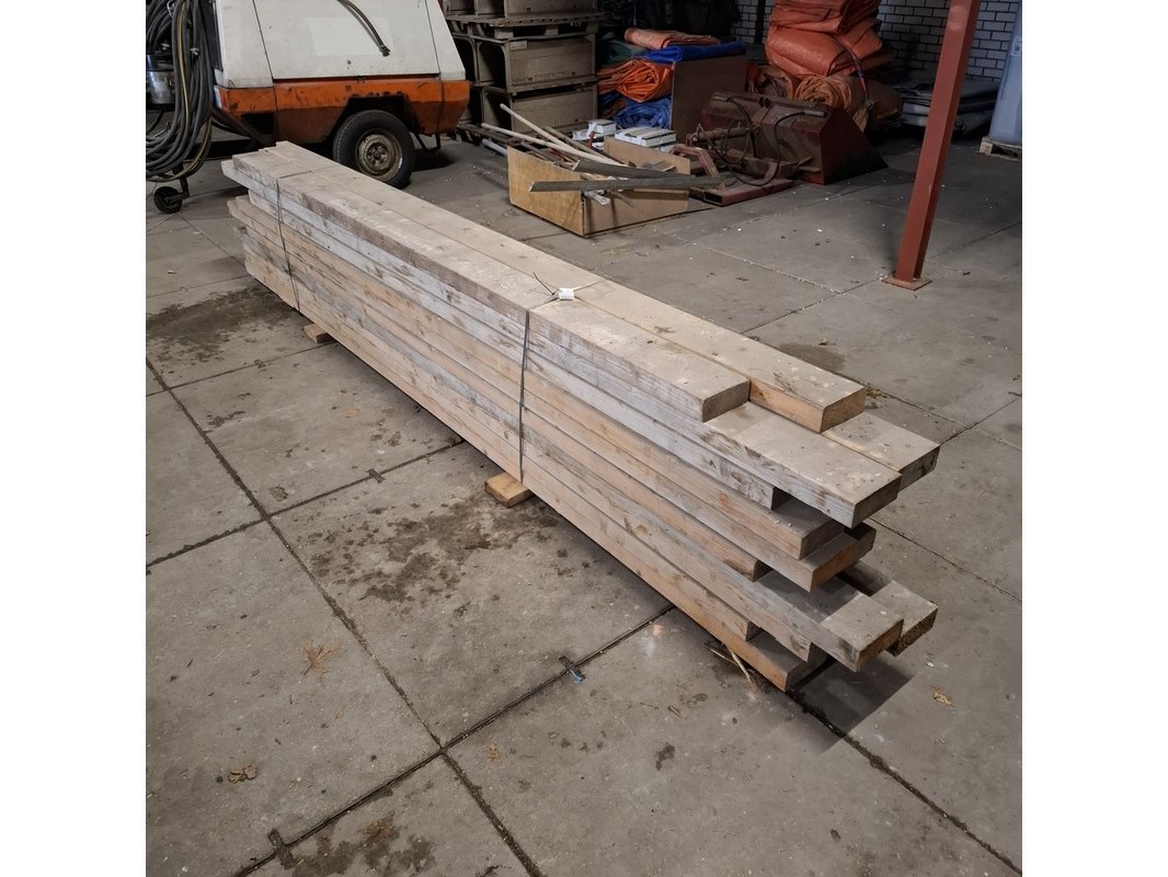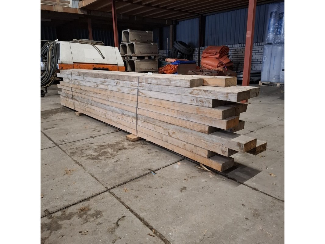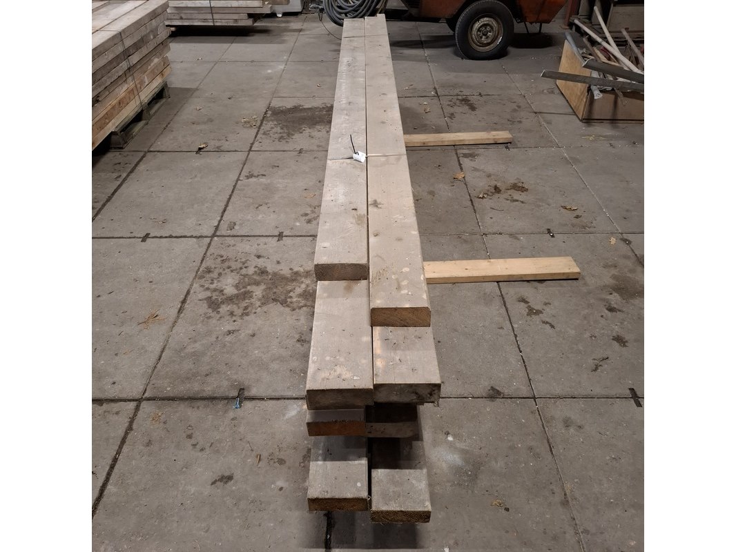 Product: Partij houten balken Conditie: gebruikt Specificaties: Minimale lengte ca. 336cm, maximale lengte ca. 400cm. Alles is ca. 17cm en 7cm hoog