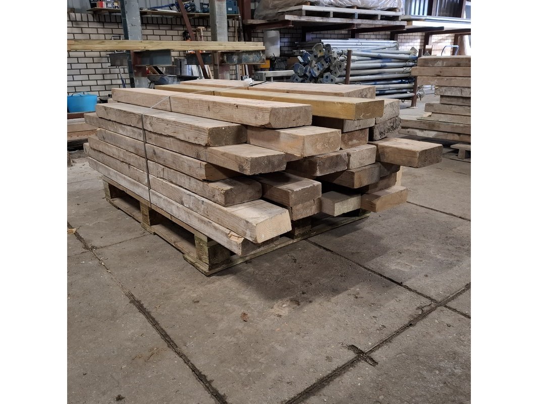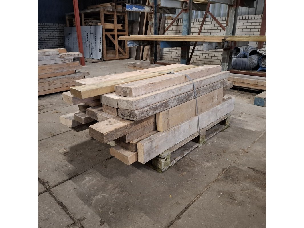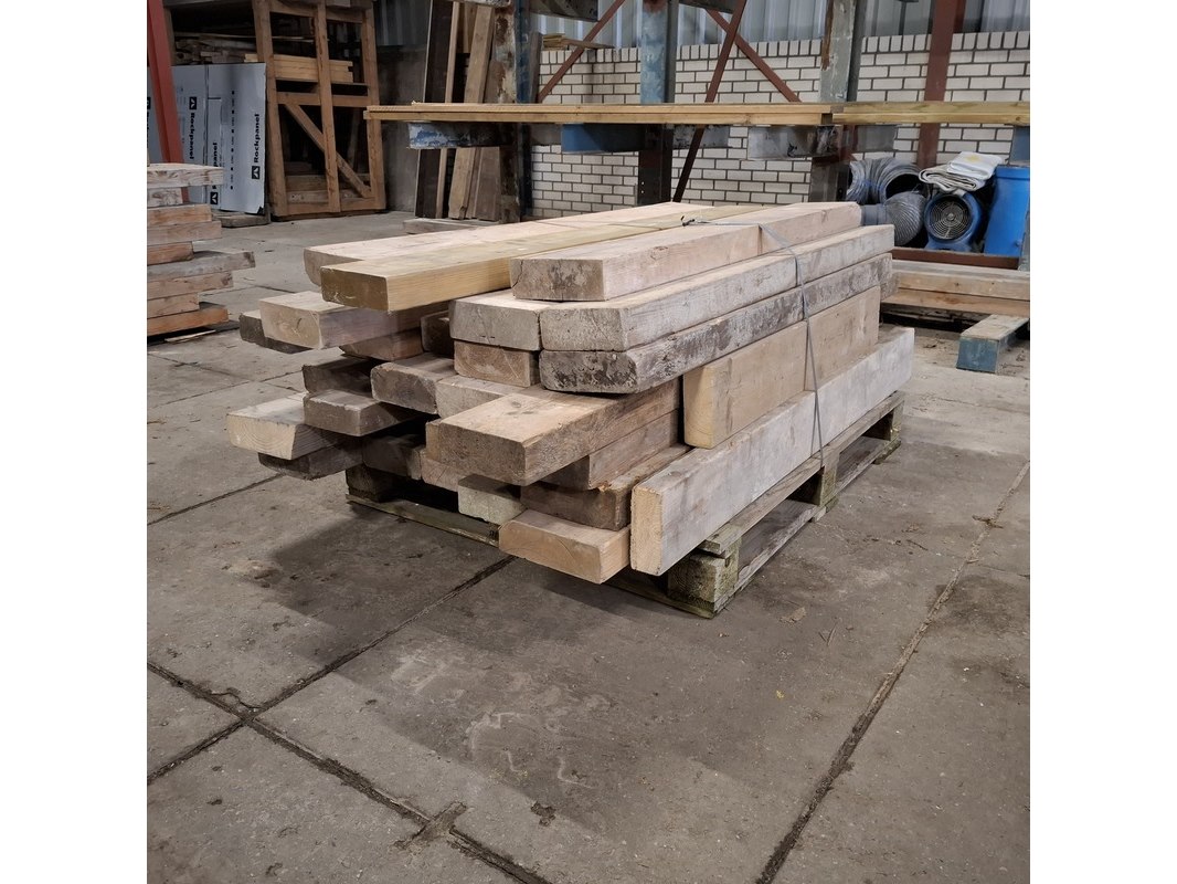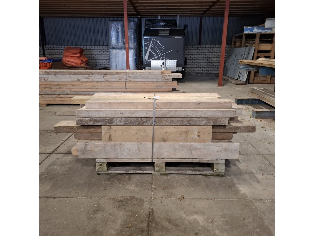 Product: Partij houten balken Conditie: gebruikt Specificaties: Minimale lengte ca. 102cm, maximale lengte ca. 192cm. 7/23cm breed, 6/7cm hoog.