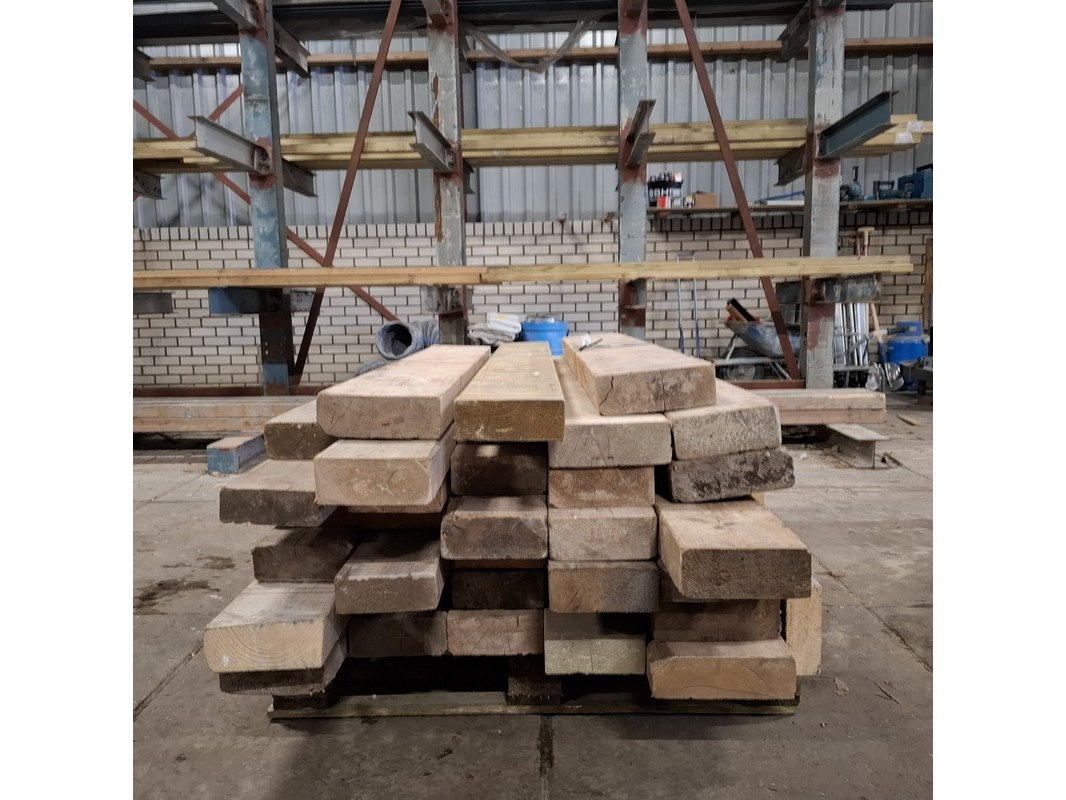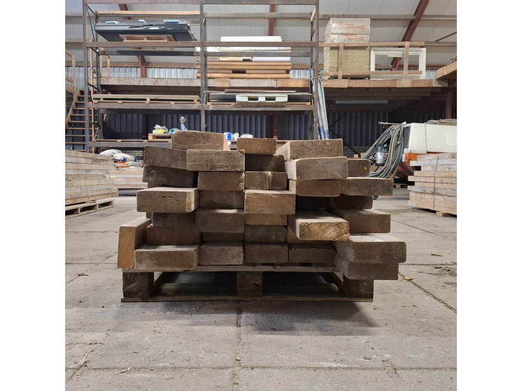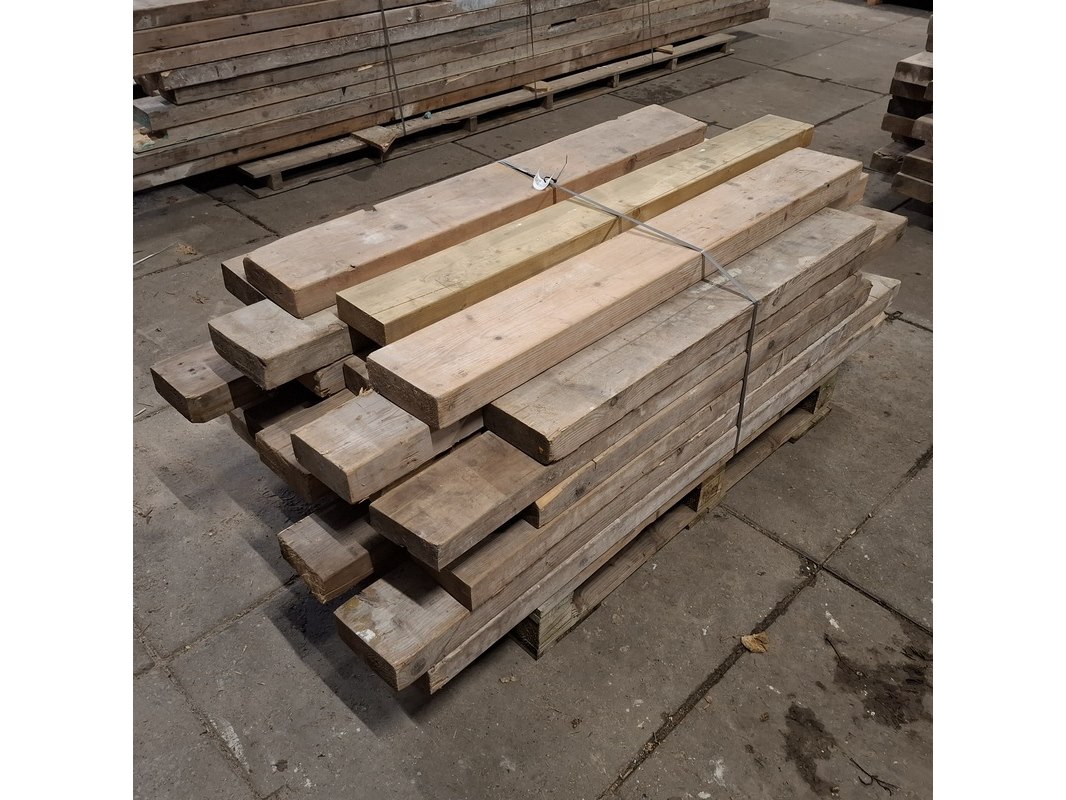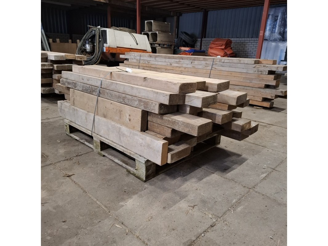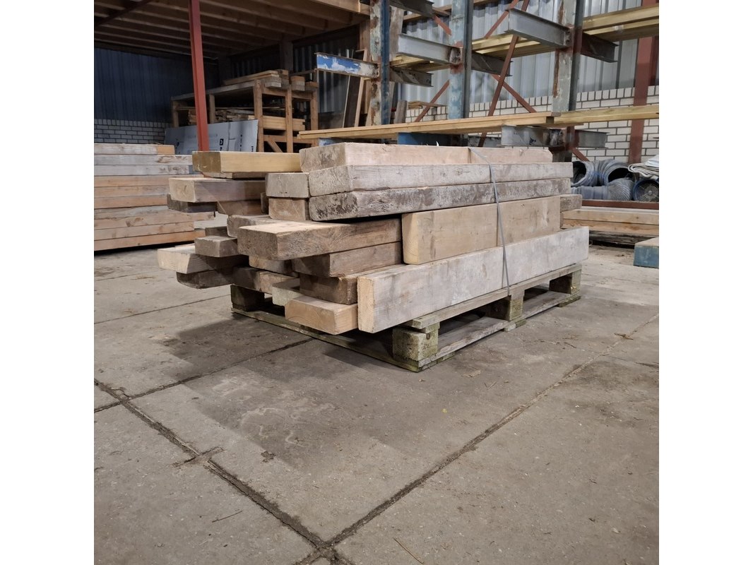 Product: Partij houten balken Conditie: gebruikt Specificaties: Minimale lengte ca. 102cm, maximale lengte ca. 192cm. 7/23cm breed, 6/7cm hoog.