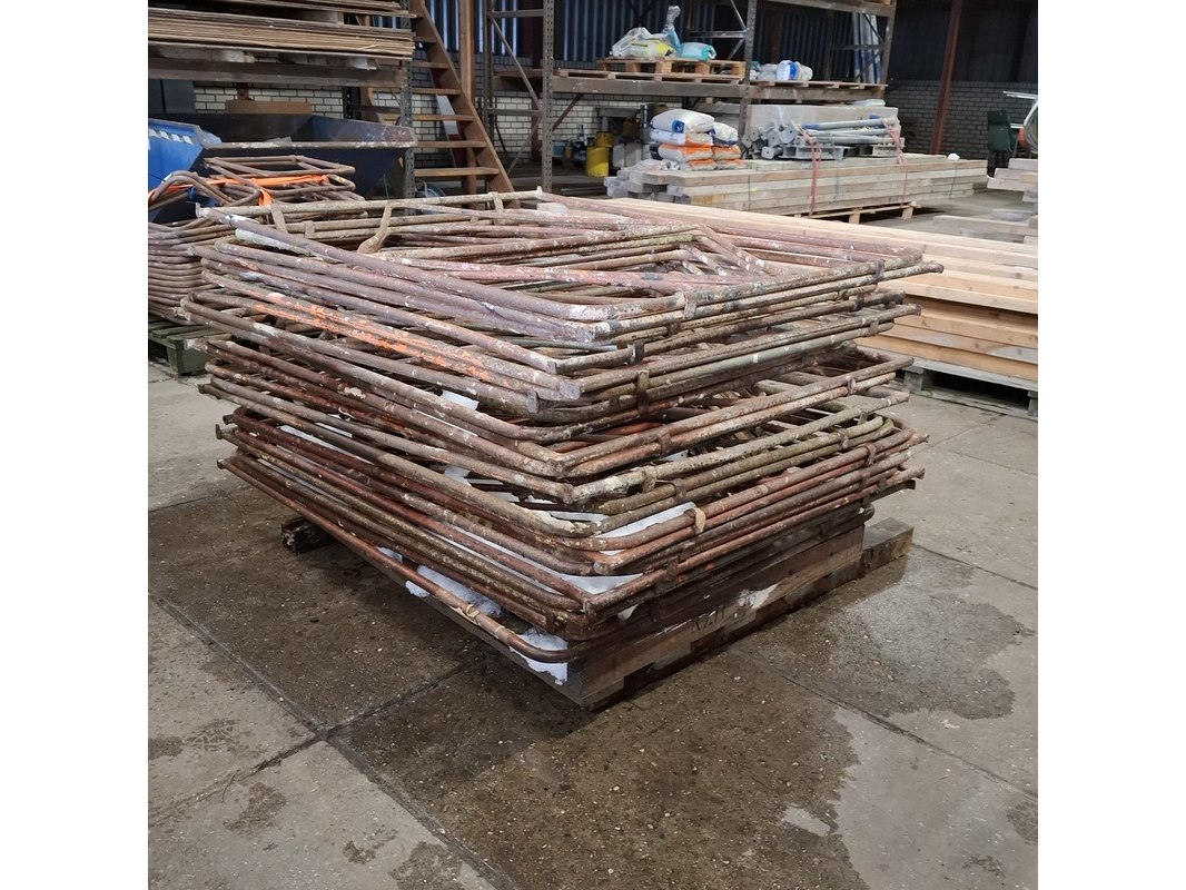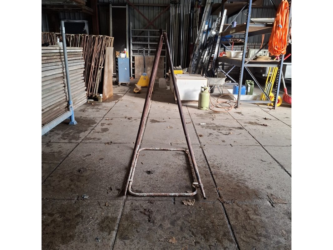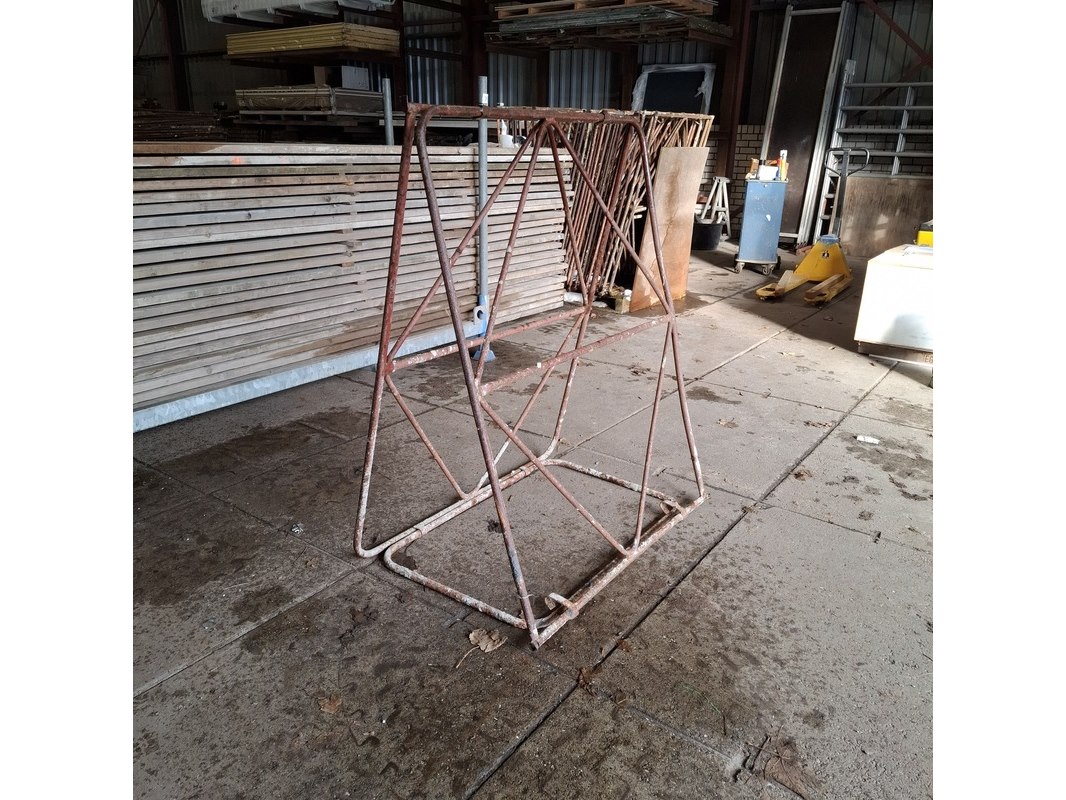 Product: Metsel-/klapschraag Materiaal: Metaal Afmeting: Hoogte ca. 132cm Conditie: gebruikt