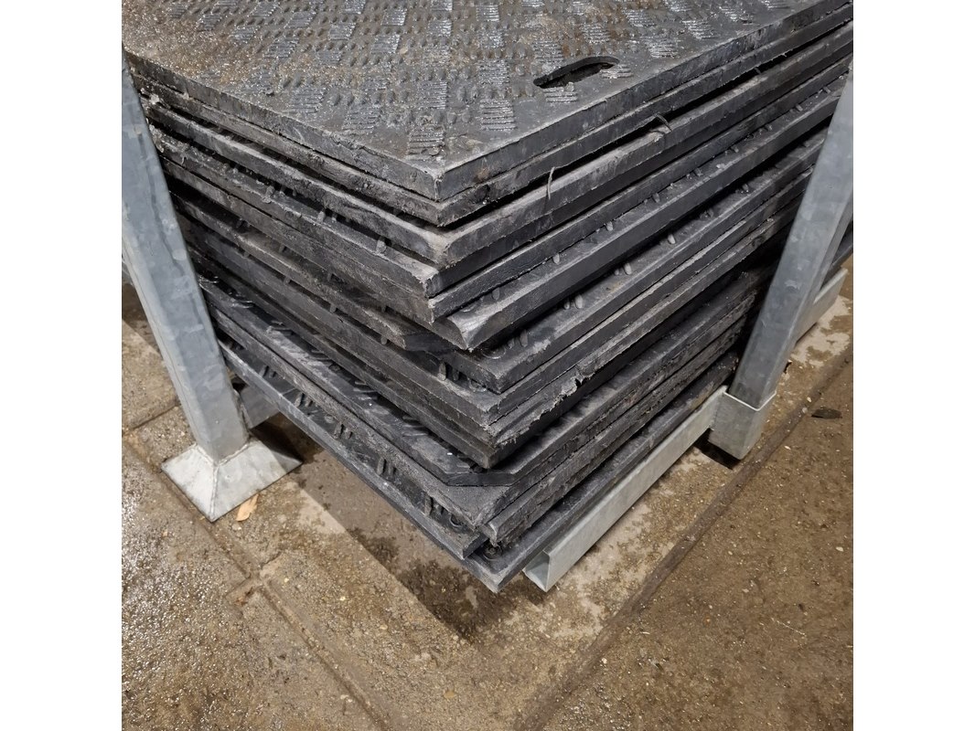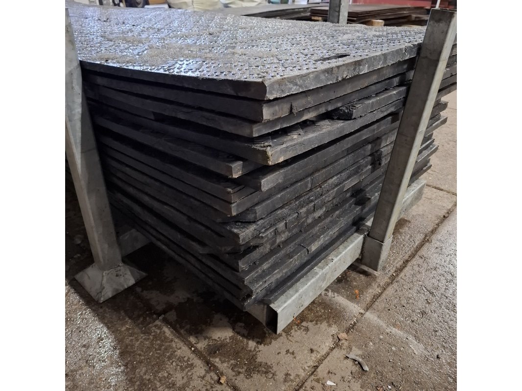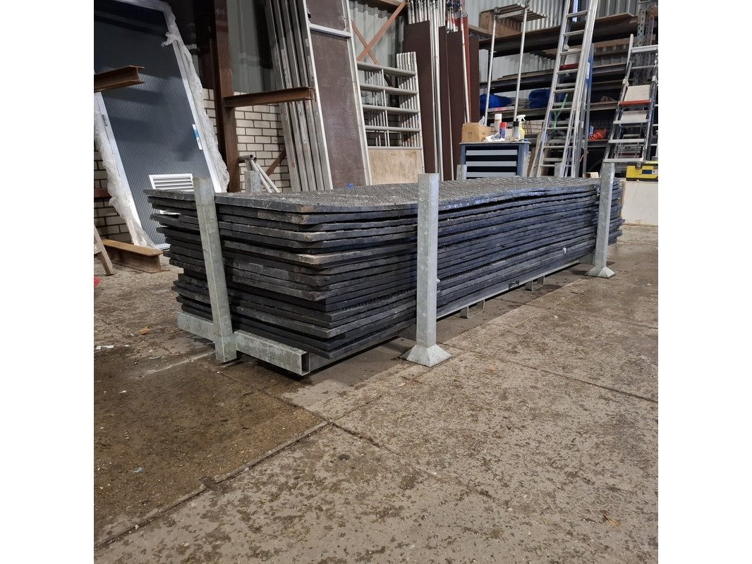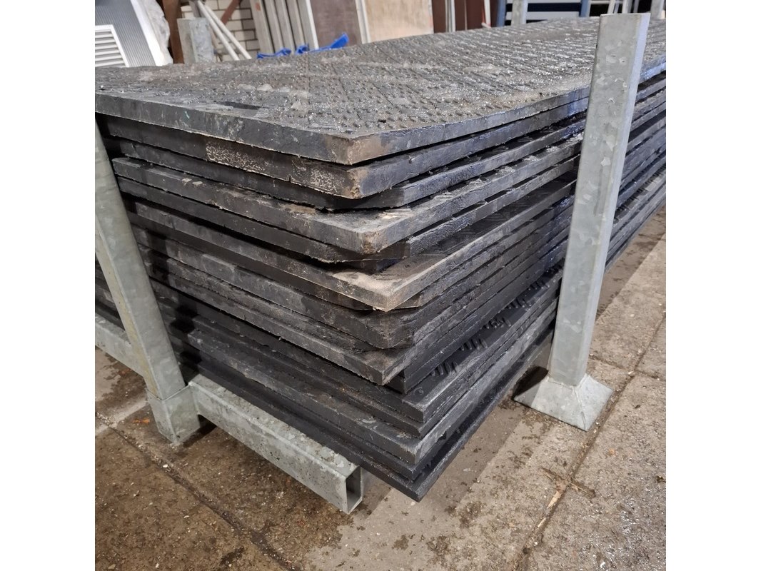 Product: Kunststof rijplaat Afmeting: Ca. 100x300cm Conditie: gebruikt Specificaties: Inclusief bok