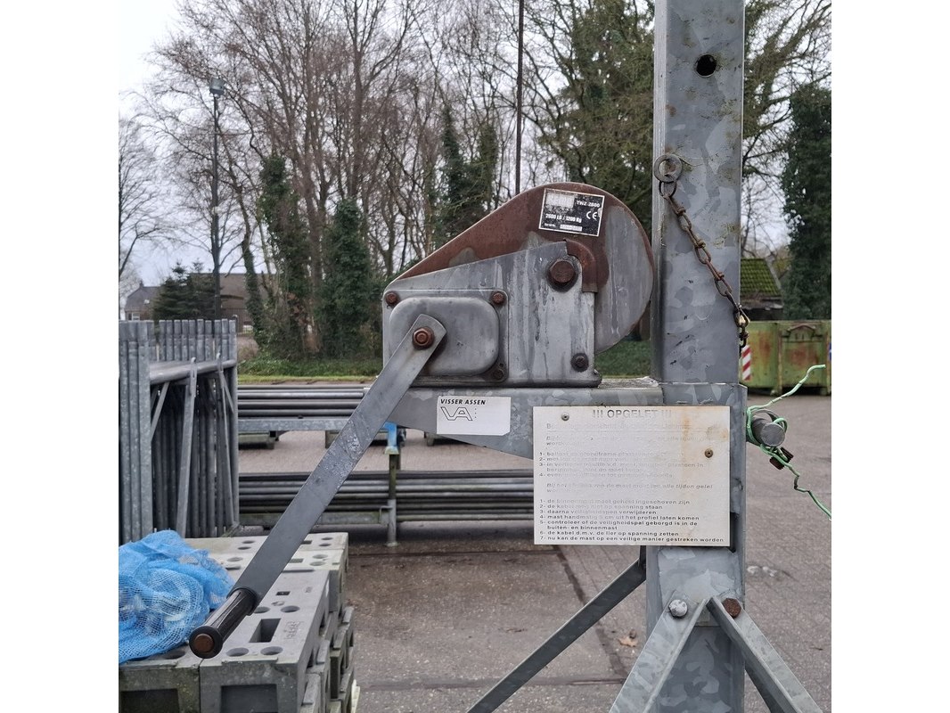 Merk: Rema Product: Lichtmast Conditie: gebruikt Specificaties: max. 1200kg, uitschuifbaar 6/10m, voet ca. 183x183cm
